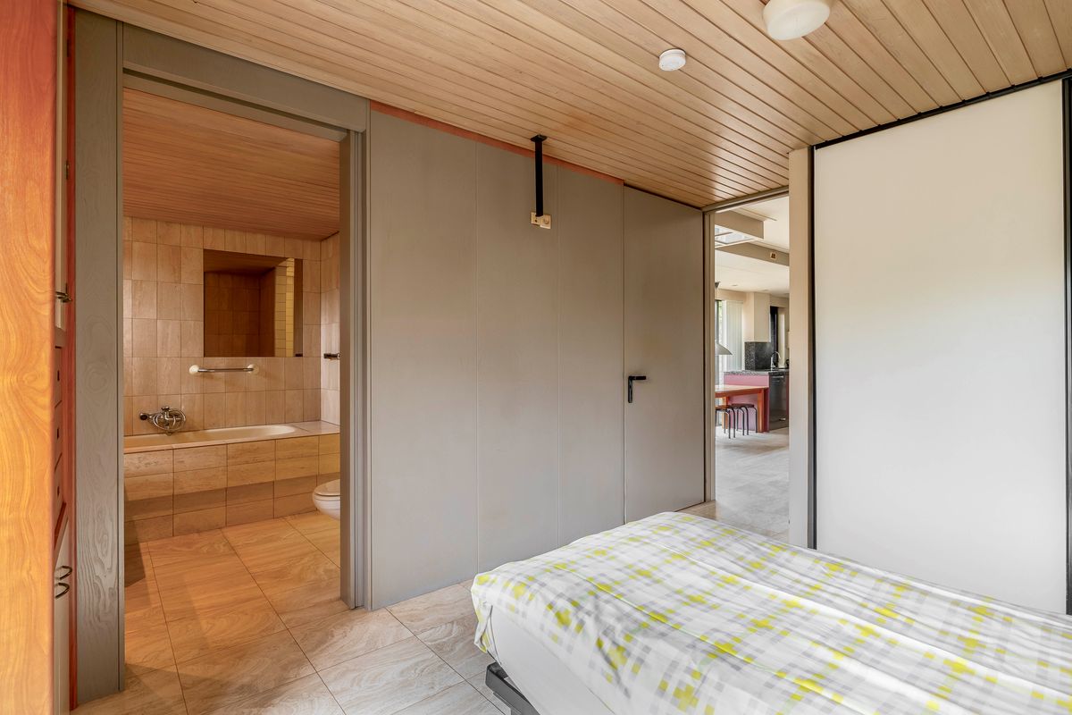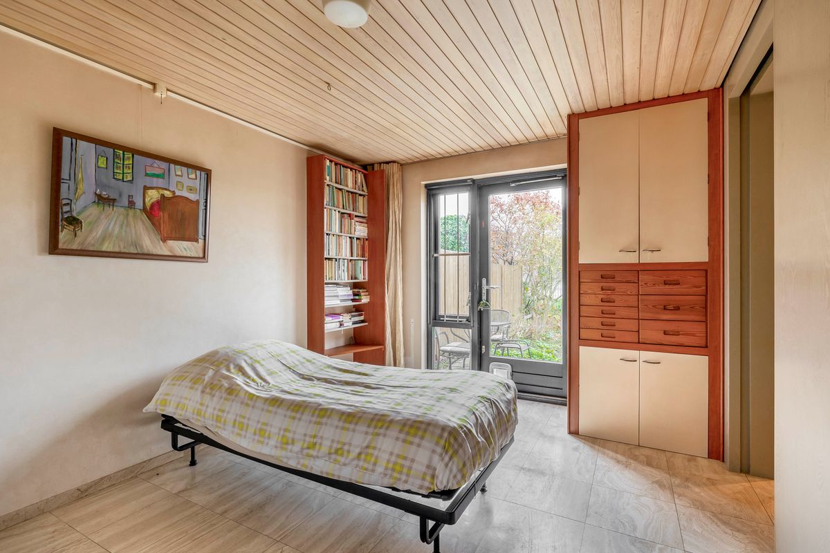 Vanuit de eetkamer is de slaapkamer bereikbaar. Ook hier is een inbouwkast aanwezig. Er is een deur naar de achtertuin en een schuifdeur naar de badkamer. De badkamer is zeer ruim en beschikt over een ligbad, inloopdouche, wastafel met meubel en closet. Ook is hier een wasmachineaansluiting aanwezig.