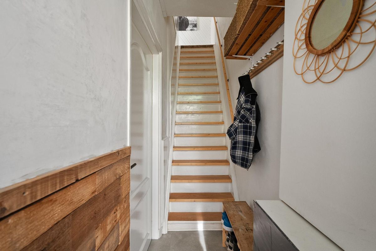 De zolderverdieping is bereikbaar via een trap en biedt extra bergruimte , handig voor koffers, seizoensspullen of hobbybenodigdheden.