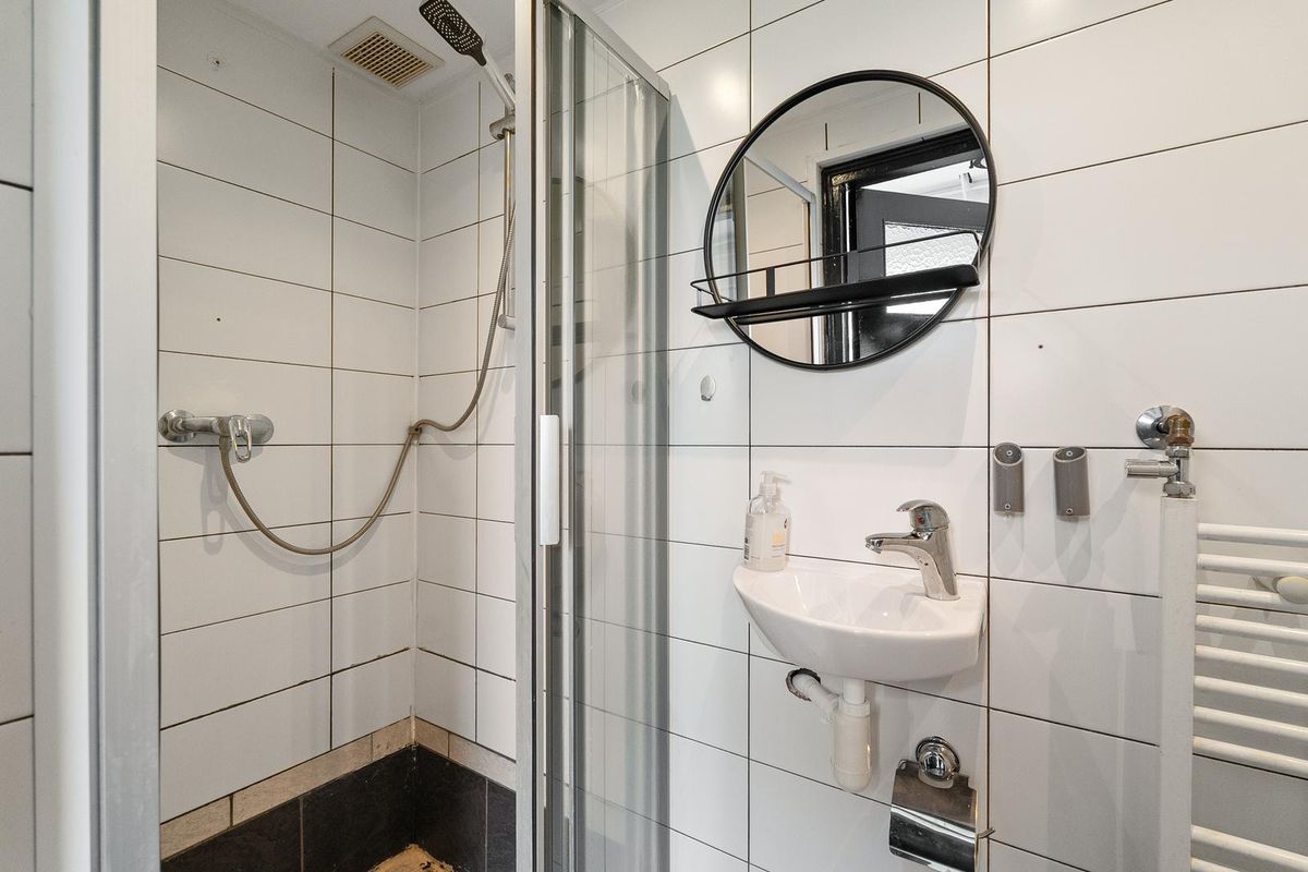 - Badkamer met douche, wastafel en toilet