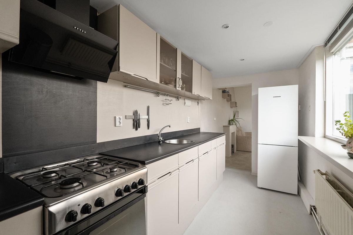 De moderne keuken is voorzien van diverse inbouwapparatuur en kijkt uit op de achtertuin, waardoor koken extra plezierig wordt. De badkamer is netjes afgewerkt en uitgerust met een douche, toilet en wastafel.