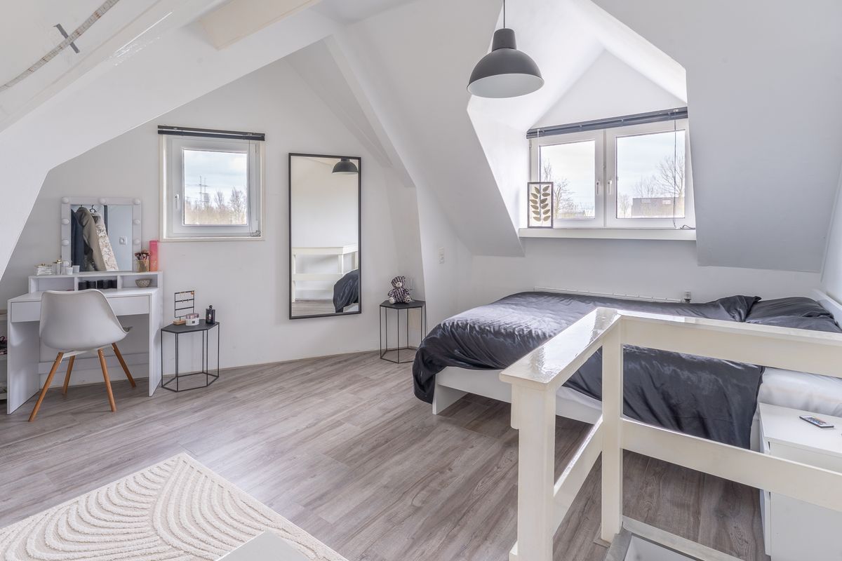 Via een vaste trap bereikt u de overloop. Hier bevindt zich een afsluitbare zolderkamer met een stahoogte van 2,13 m, ideaal als extra slaapkamer of werkruimte.