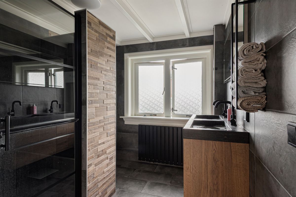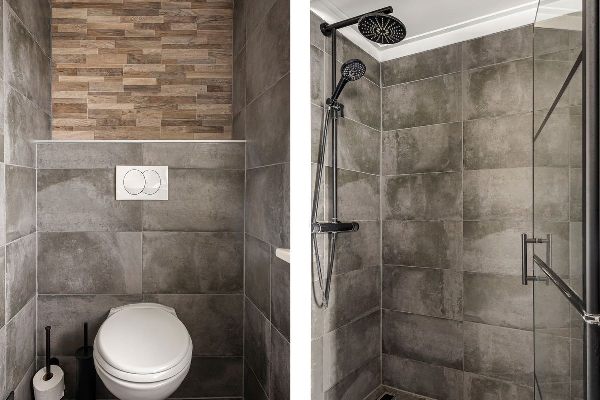 Op de verdieping bevinden zich de 2 royale slaapkamers, allemaal netjes afgewerkt en van goed formaat. De badkamer is modern en luxe uitgevoerd, met een inloopdouche, stijlvol wastafelmeubel en hoogwaardige materialen.