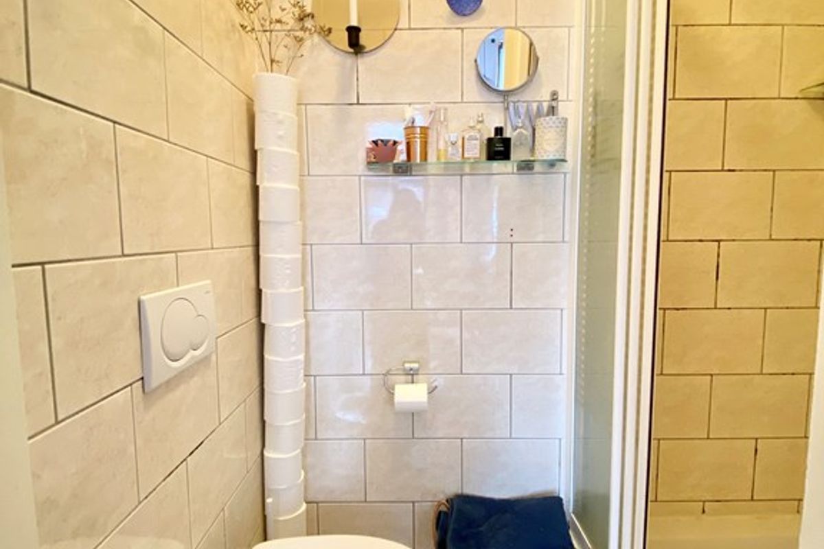 Op de gang is een wasmachine, gedeeld met 1 ander persoon.