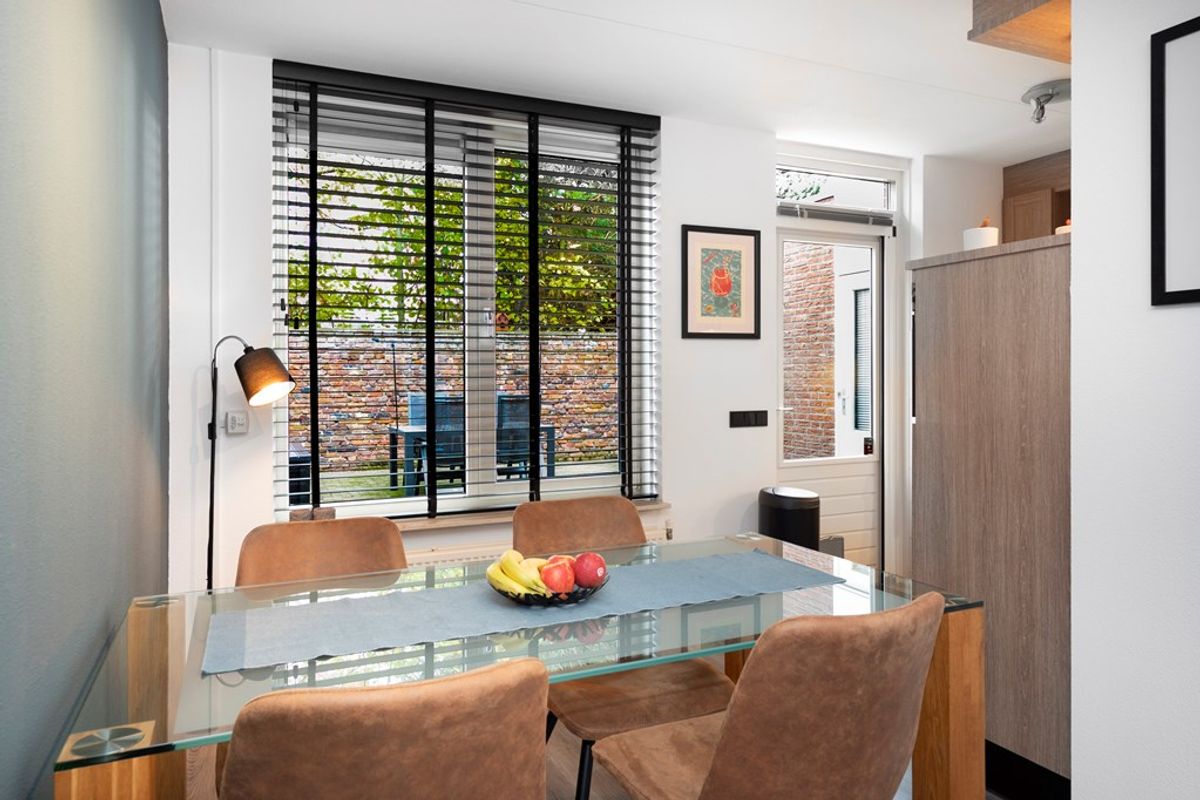De woning heeft een frisse uitstraling en biedt op de begane grond een lichte en sfeervolle woon-/eetkamer, met open verbinding naar een smaakvolle, moderne keuken. De apparatuur; inductiekookplaat, afzuigkap, koelkast, combi-oven en een vaatwasser met Home Connect.