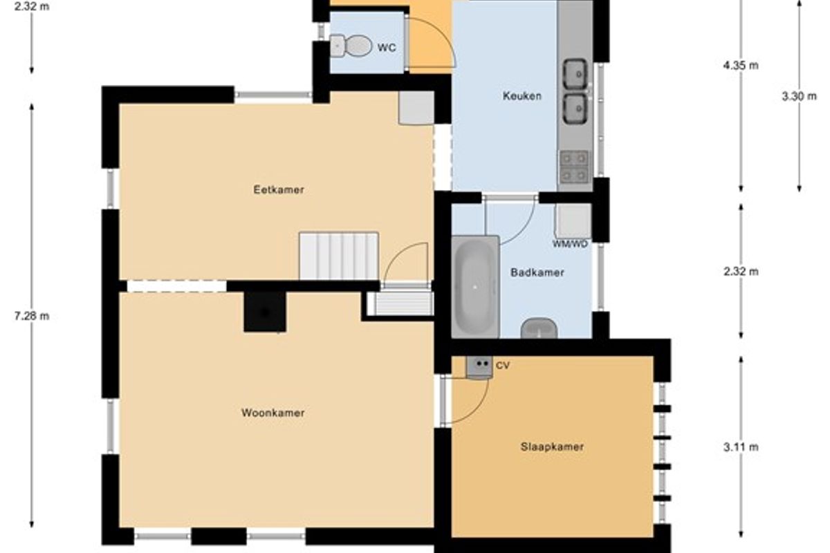 Entreehal, toiletruimte, keuken, woon/eet-kamer, slaapkamer voorzien van c.v. installatie, badkamer.