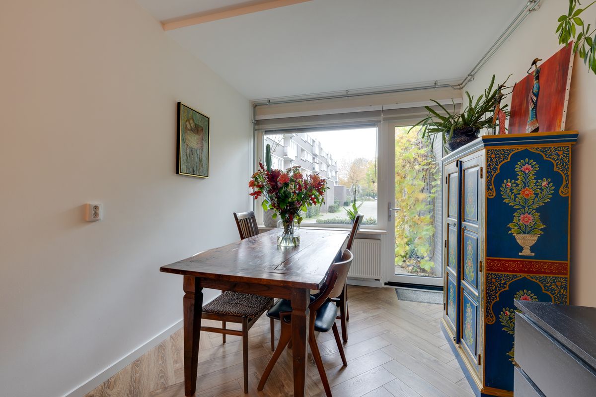 Via de keuken kom je in de eetkamer, gelegen aan de voorzijde van de woning. Hier is voldoende ruimte voor een eettafel en via deze kamer heb je toegang tot de voortuin.