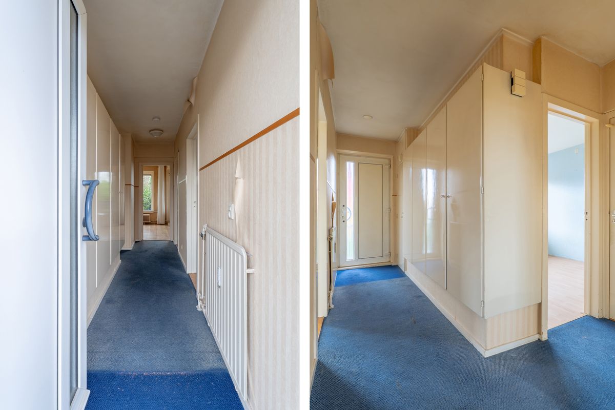 De entree van de woning geeft toegang tot een ruime hal. Vanuit de hal heb je toegang tot de meterkast, het toilet, de badkamer, twee slaapkamers en de woonkamer met open keuken.