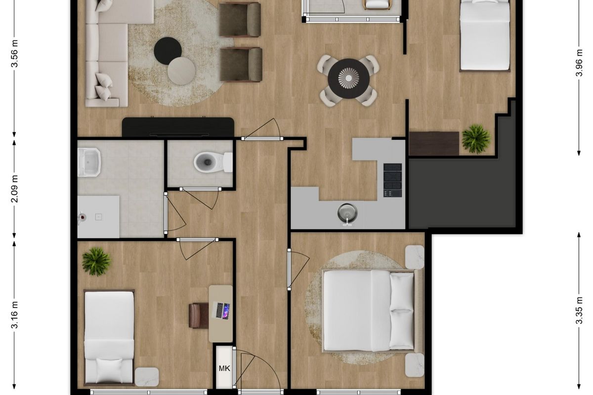 Via de woonkamer kom je in een aparte ruimte die nu is ingericht als gezellige eethoek, maar ook prima kan dienen als derde slaapkamer.