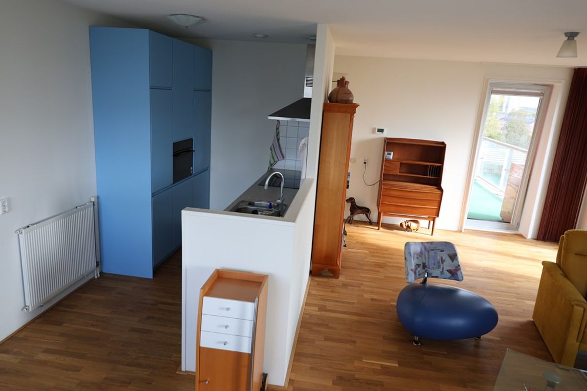 Bij binnenkomst valt direct de brede gang op, die toegang biedt tot alle vertrekken. De ruime woonkamer is licht dankzij de hoekligging en grote raampartijen, en biedt een directe doorgang naar het riante balkon – de ideale plek om te genieten van het uitzicht en de buitenlucht.