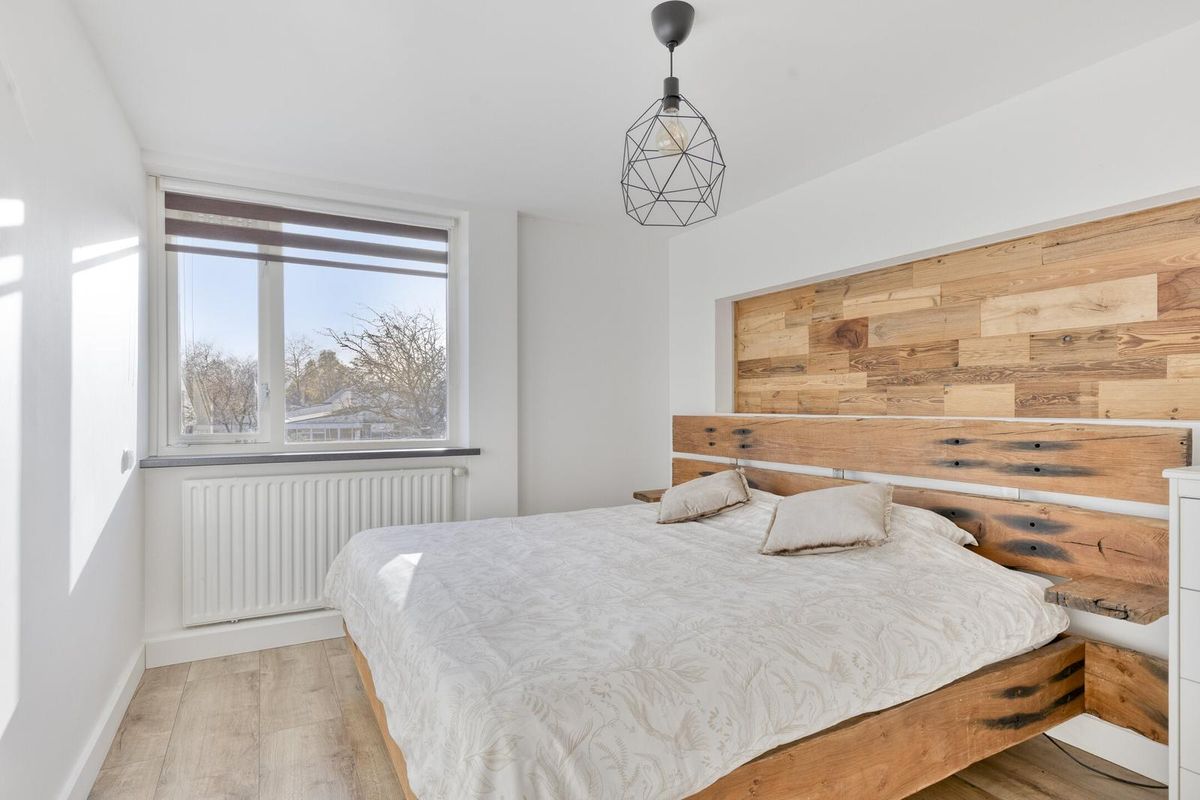 De zolder is bereikbaar via een vaste trap. Op de overloop is ruimte voor de wasmachine en extra opbergruimte achter houten schuifdeuren.
