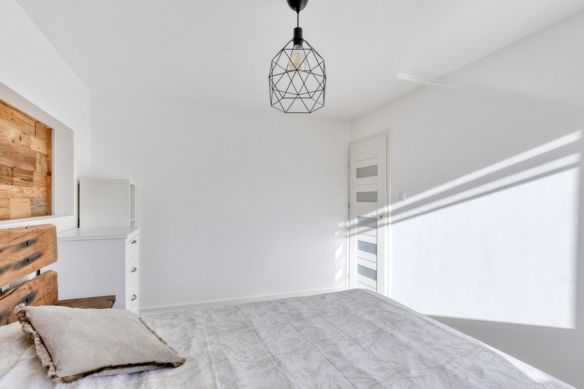 De vierde slaapkamer bevindt zich op de zolder. Deze is licht en netjes afgewerkt in dezelfde stijl als de rest van het huis — met gladde wanden en houten details. Het dakraam zorgt voor voldoende daglicht. De ruimte is perfect als volwaardige slaapkamer, werkplek of hobbykamer en blijft dankzij de verwarming het hele jaar comfortabel.