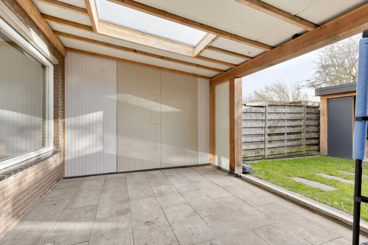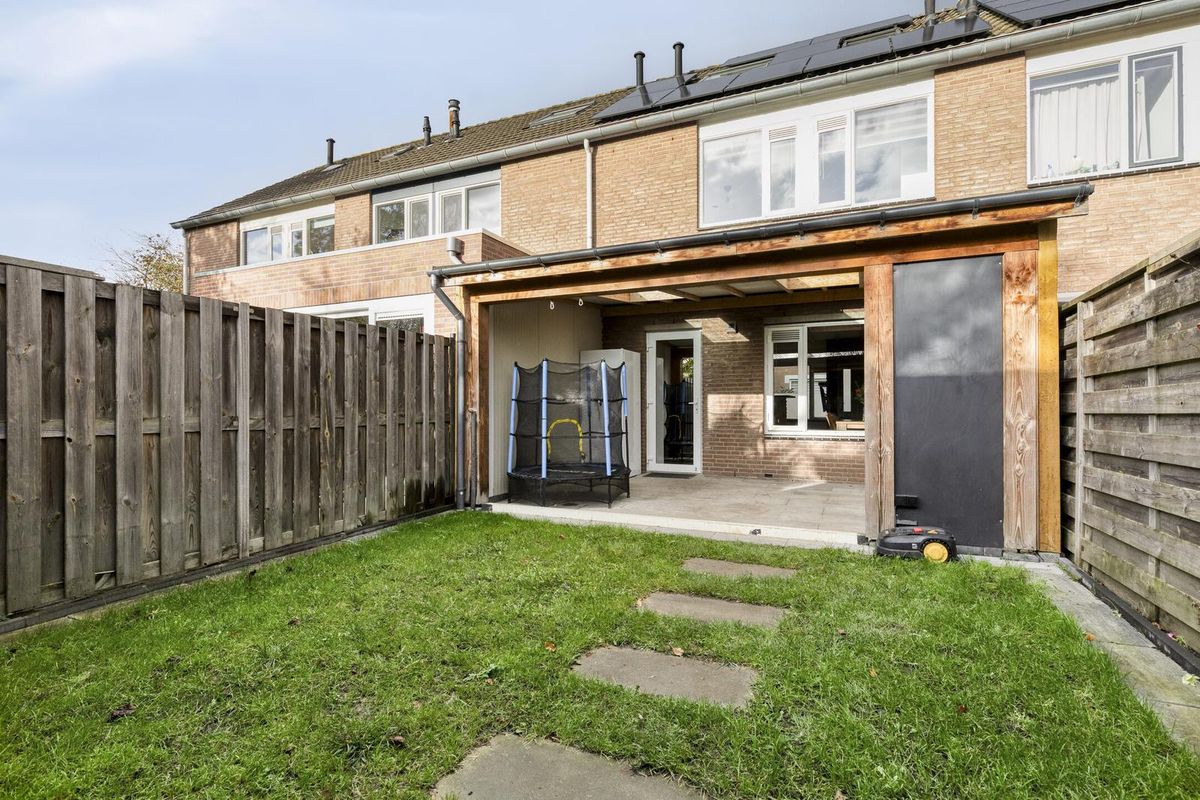 De achtertuin is onderhoudsvriendelijk, grotendeels betegeld en gecombineerd met gras en een verharde ondergrond. Aan de achterzijde bevindt zich een overkapping, waardoor de tuin bij diverse weersomstandigheden te gebruiken is. Bij de schuur is bovendien een grote extra overkapping gerealiseerd, ideaal als praktische opbergruimte.