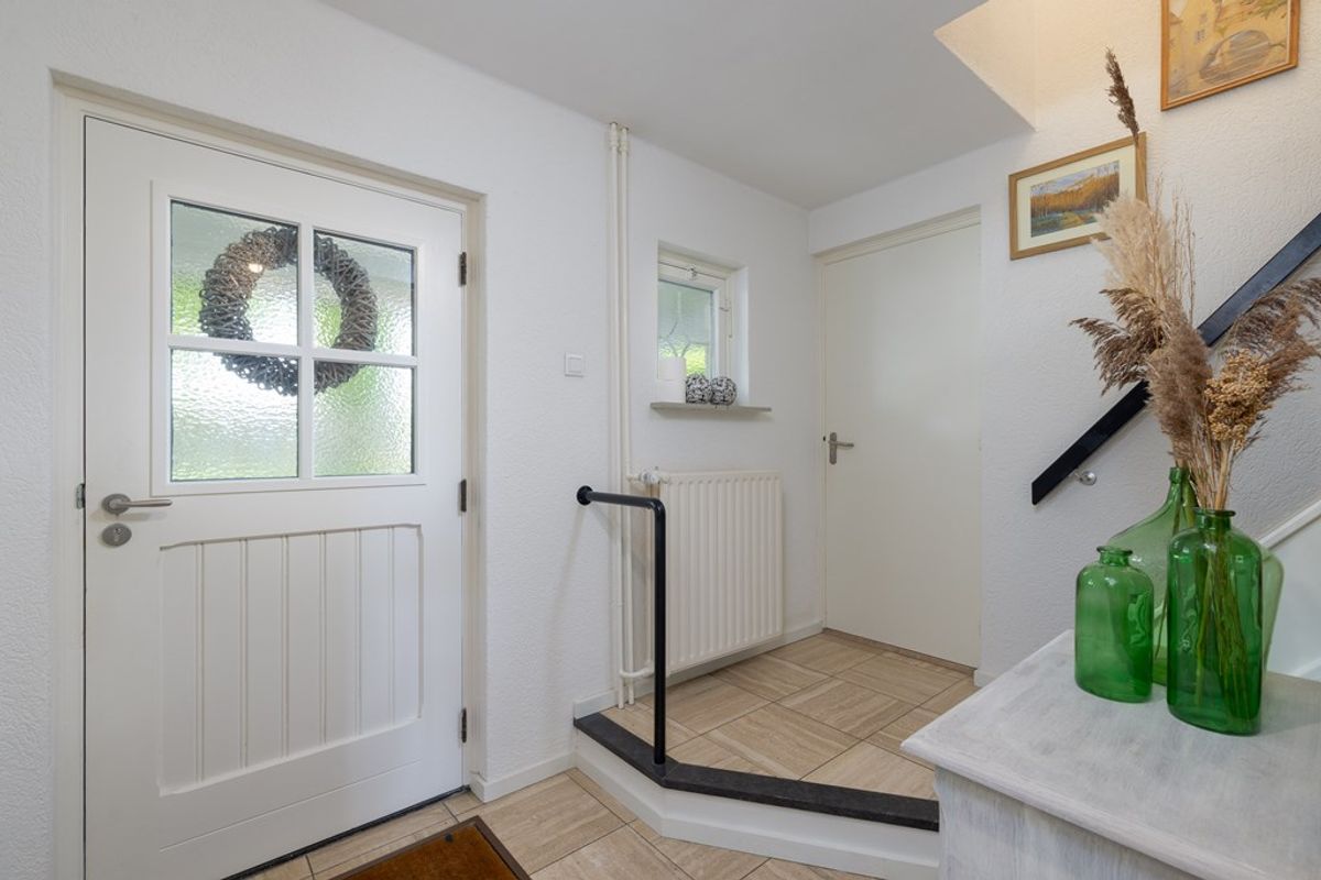 De woonkamer geeft toegang tot een multifunctionele werkkamer – ideaal als thuiskantoor, atelier of speelruimte. Daarnaast beschikt de woning over een inpandige garage met volop bergruimte en toegang tot een ruime vliering.