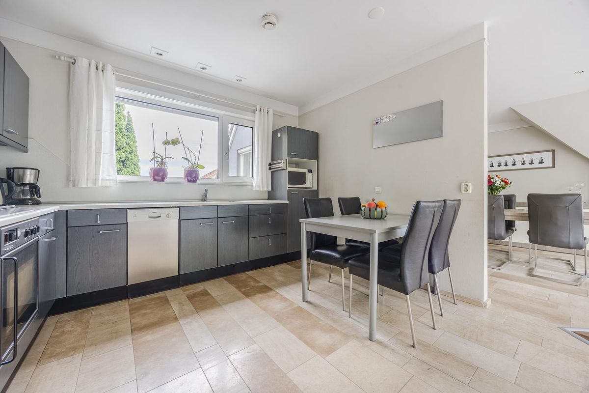 De halfopen leefkeuken is modern en voorzien van een Travertin tegelvloer, vloerverwarming en gestuct plafond. De keuken beschikt over inbouwapparatuur: 4-pits gaskookplaat, afzuigkap, koelkast en een vaatwasser. De keuken is verder voorzien van een airconditioning (koelen en verwarmen). Vanuit de keuken heeft u zicht op het dakterras zuid-oost gelegen.