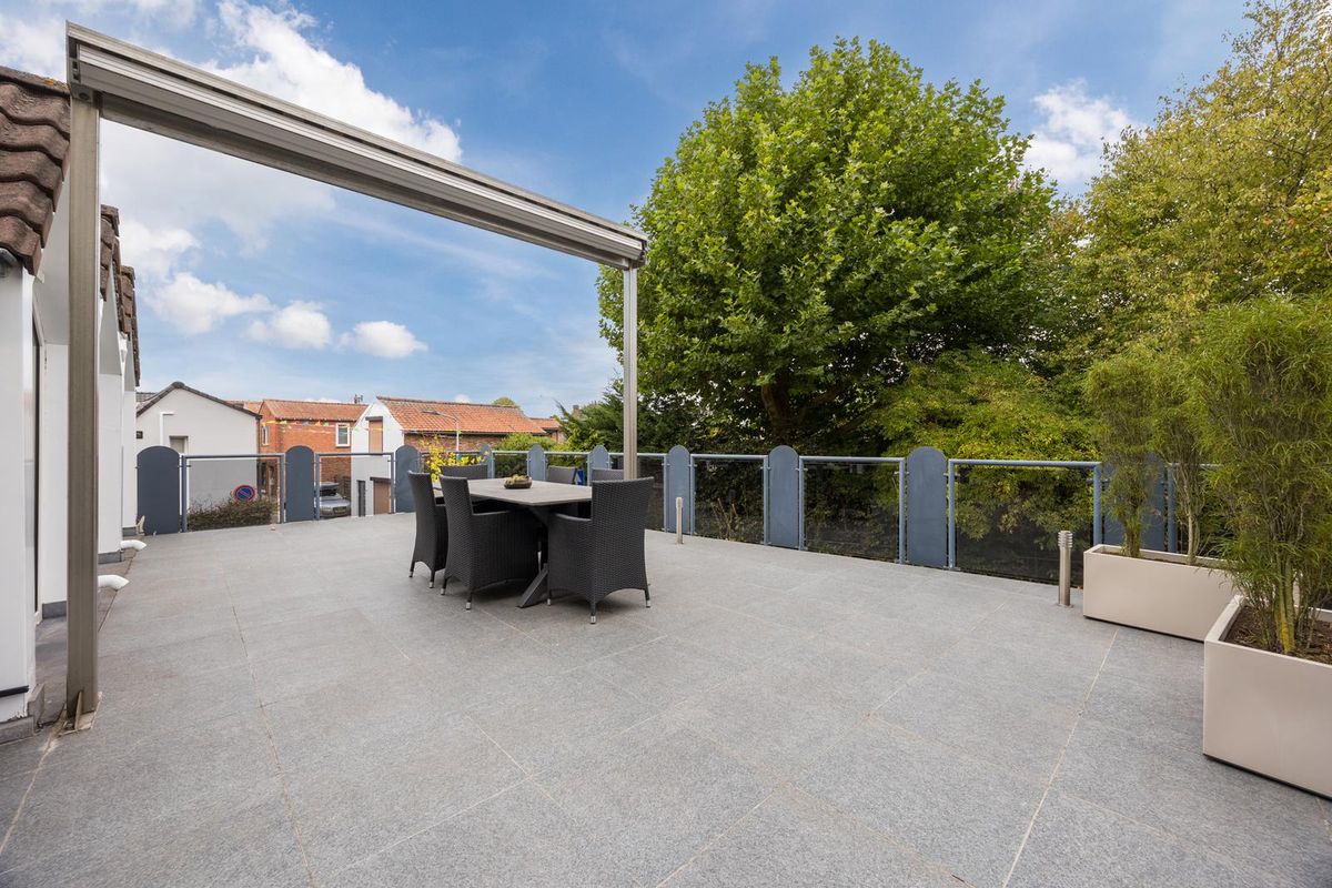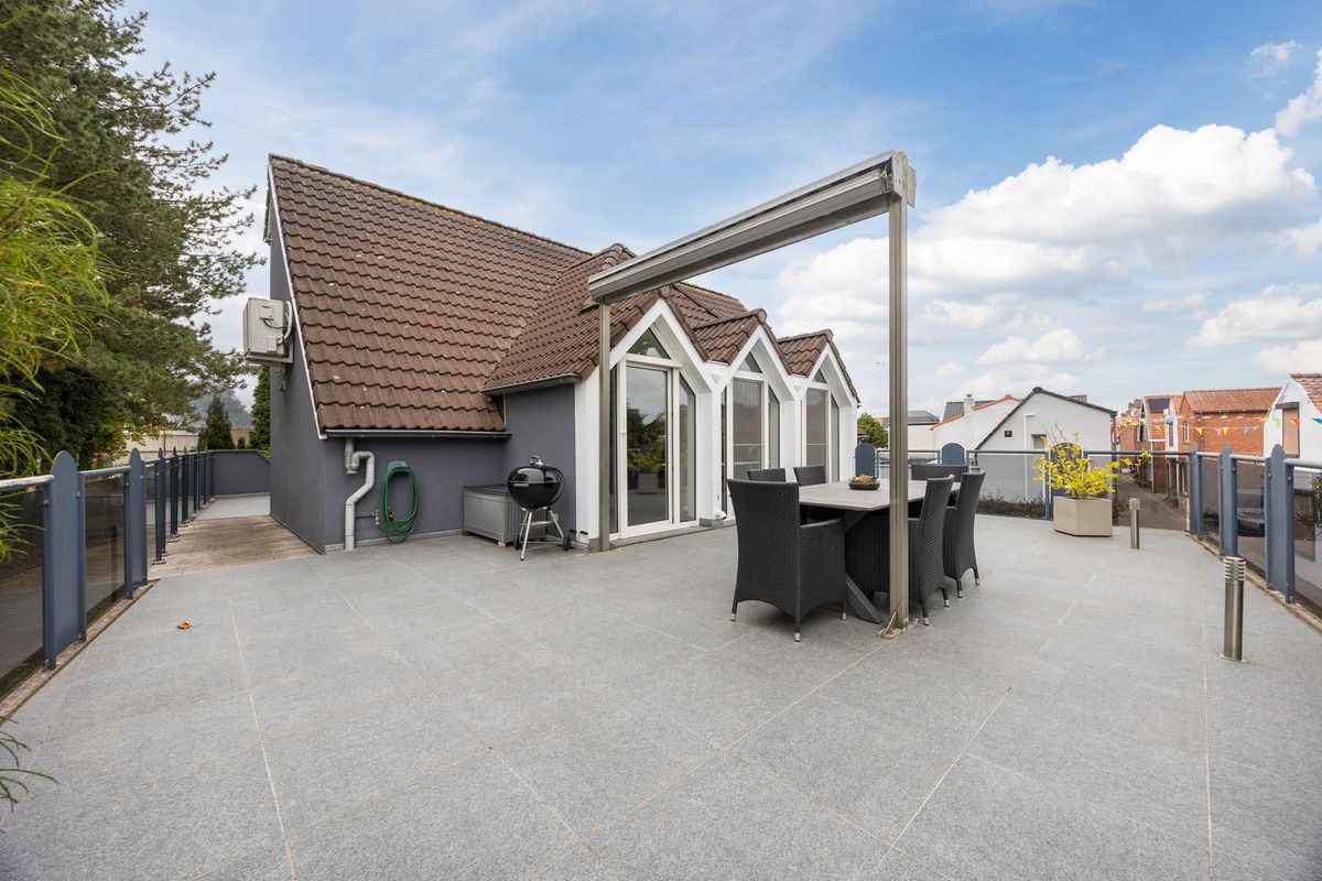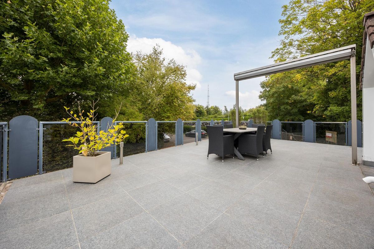 Vanuit de woonkamer heeft u toegang tot het gigantische dakterras op het oosten en westen gericht. Dit dakterras is volledig betegeld en voor een groot deel voorzien van een zonwering. Het dakterras is omheind met een glazen balustrade. U heeft hier vanuit een schitterend uitzicht over Philippine of over het Zeeuws-Vlaamse landschap.