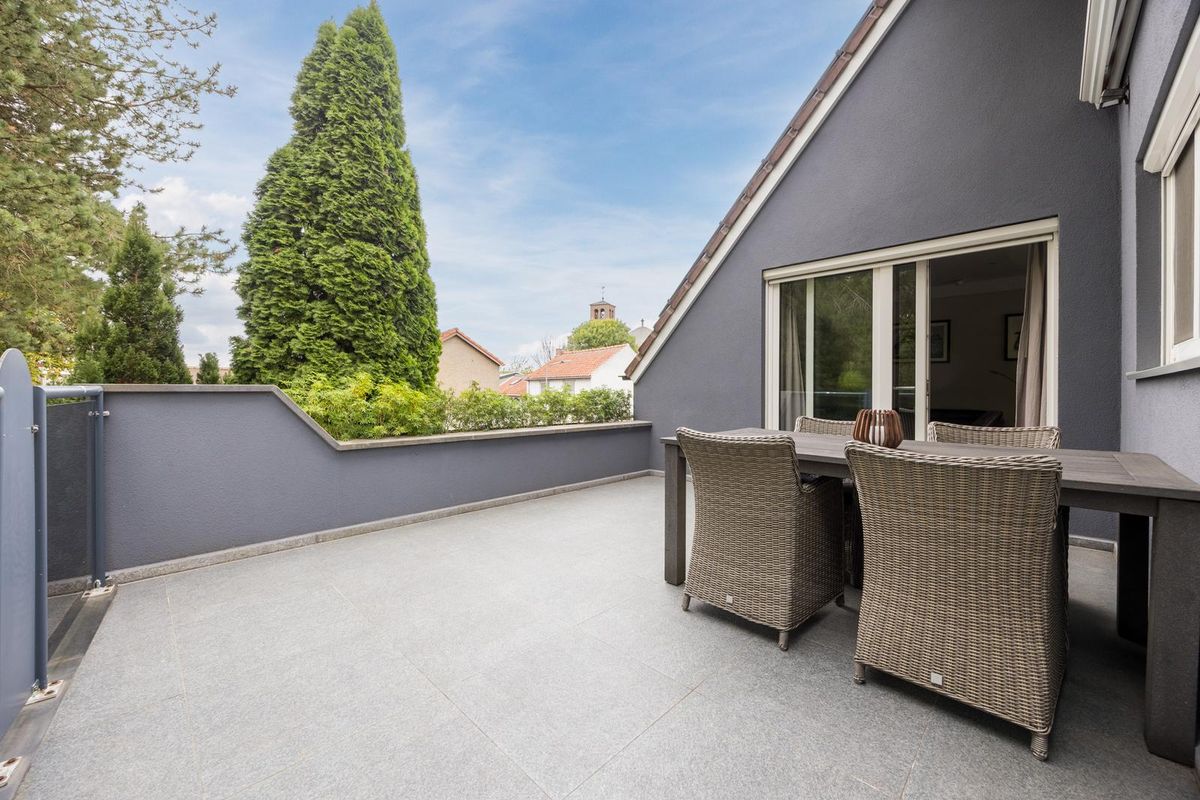 Onder het volledige dakterras bevindt zich een carport waar de auto’s op eigen terrein geparkeerd kunnen worden.
