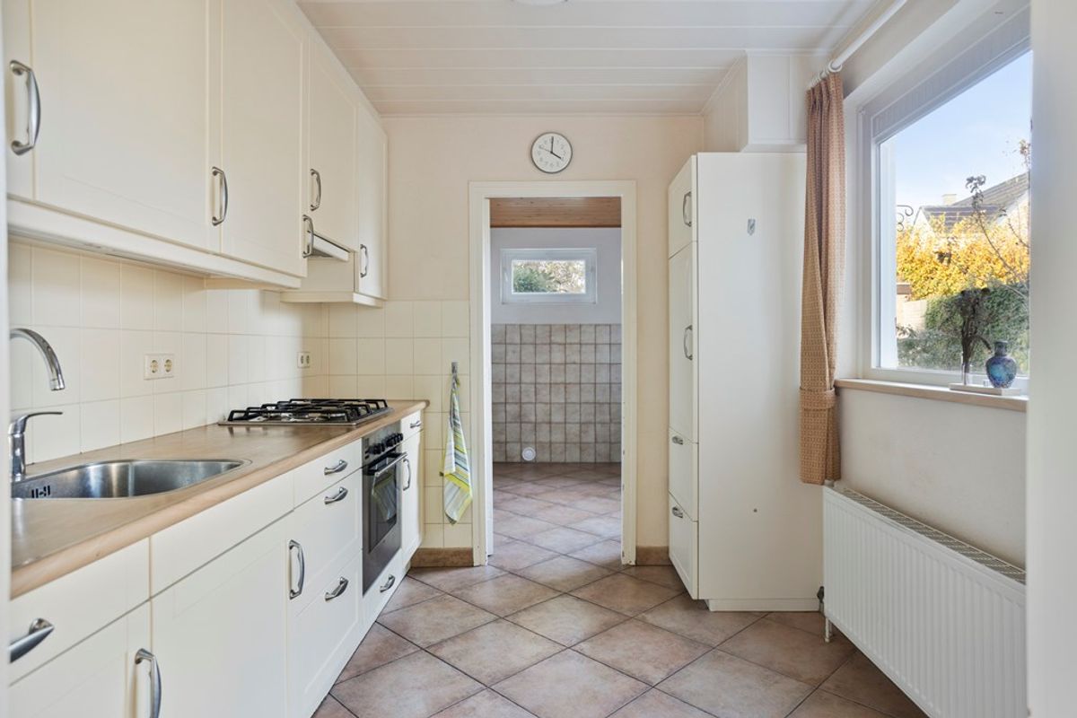 Binnen word je verwelkomd in de lichte, royale woonkamer met prettige indeling en uitzicht op de groene tuin. De gesloten keuken is netjes afgewerkt en voorzien van een moderne inbouwcombinatie met complete inbouwapparatuur. Aangrenzend vind je de praktische bijkeuken met extra opbergruimte.