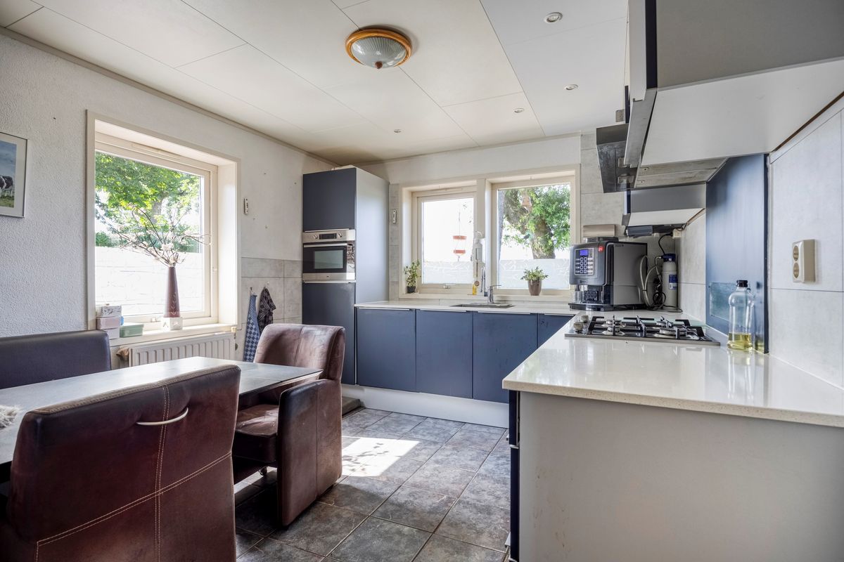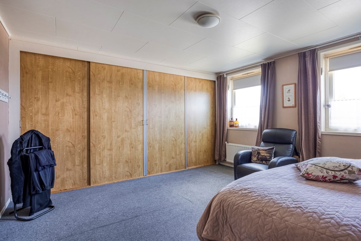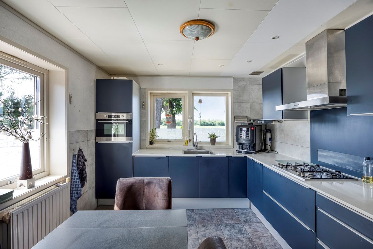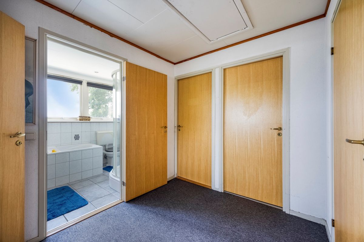 Entree met toilet, meterkast en vaste kast. Bij binnenkomst treft u een lichte L-vormige woonkamer waar de grote ramen zorgen voor een prachtig uitzicht over het omringende groen. Vanuit hier loopt u zo de veranda op, waar het in elk seizoen heerlijk vertoeven is. De woonkeuken, in 2020 vernieuwd en uitgerust met diverse inbouwapparatuur, vormt het hart van het huis en sluit aan op de praktische bijkeuken met witgoedaansluitingen. Achter de bijkeuken bevindt zich een tweede berging die volop ruimte biedt voor opslag of hobby’s. Aansluitend vindt u de aanbouw, oorspronkelijk ontworpen als mantelzorgwoning of dubbele bewoning. Hier is een aparte slaapkamer, woonkamer, toilet en badkamer bedacht. Deze ruimte kan naar eigen wens worden afgebouwd en ingedeeld – perfect voor zorg aan huis, gastenverblijf of een kantoor, studio of werkruimte.