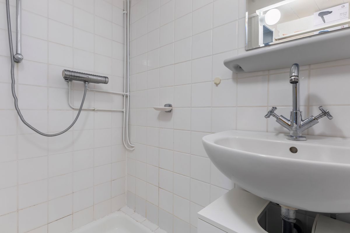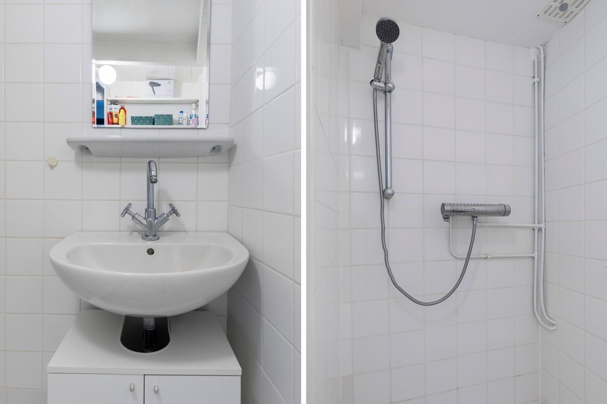 Op de begane grond bevindt zich verder een slaapkamer, een badkamer met douche en wastafel, en een apart toilet. Achter de woning vind je een aangebouwde berging, die ideaal is voor opslag, fietsen of een kleine werkruimte.