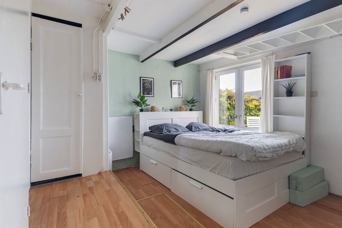 Boven de slaapkamer op de begane grond bevindt zich nog een vliering/opbergruimte, praktisch voor koffers, seizoensspullen of extra bergruimte.