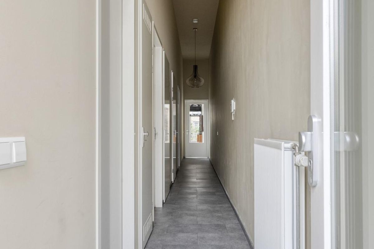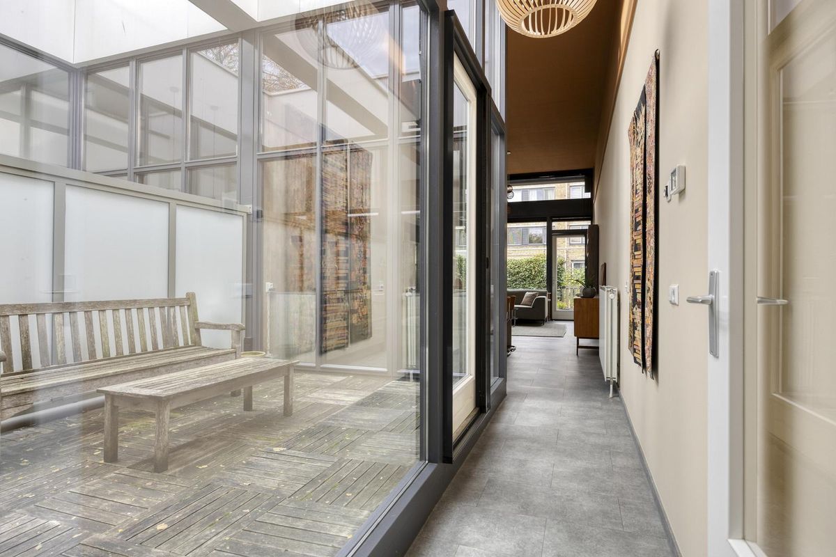 Via de ruime entree kom je in een indrukwekkende gang van 12 meter lang met een plafondhoogte van 4 meter. Vanuit hier heb je toegang tot beide slaapkamers, de badkamer, de wasruimte en het separaat toilet met fontein. Aan het einde van de gang leidt een deur met glasinzet naar de patiotuin en de royale woonkamer met open keuken.