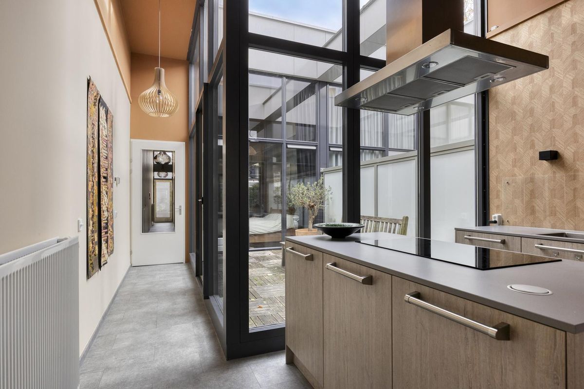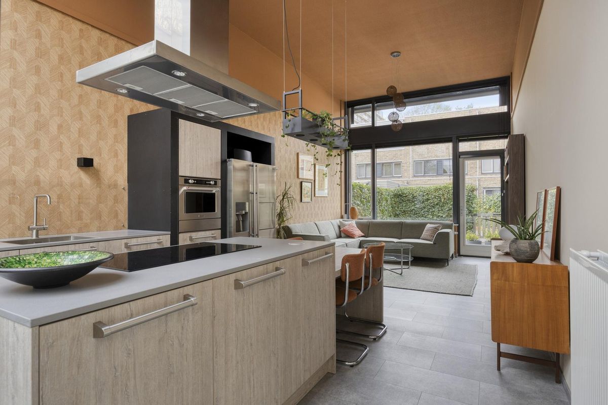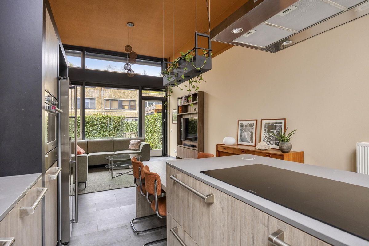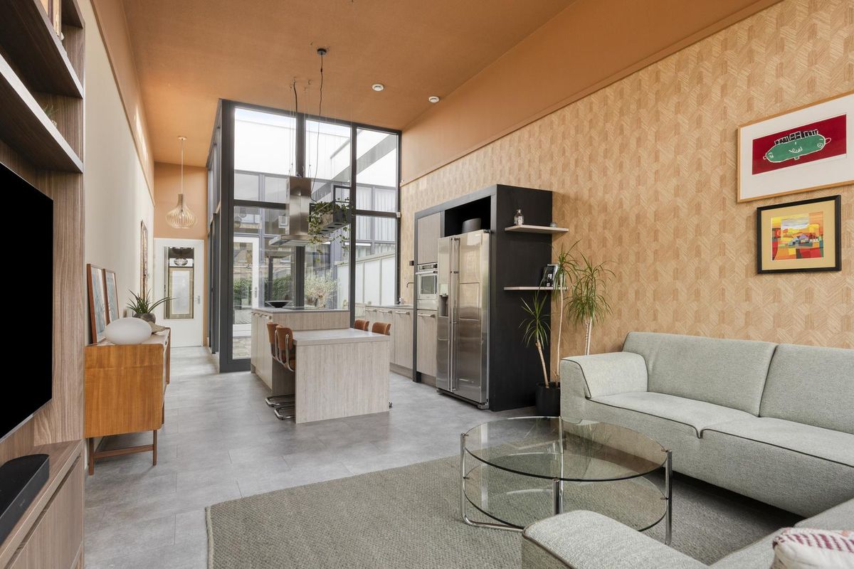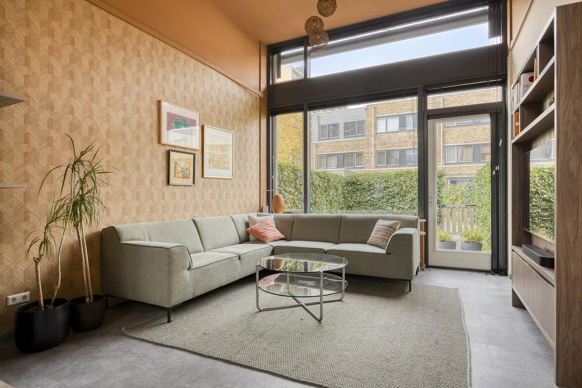 De woonkamer en keuken hebben een hoog plafond en veel lichtinval dankzij de grote glazen pui aan de achterzijde, met mooi uitzicht op de achtertuin. De woonkamer is afgewerkt met een moderne PVC-vloer.