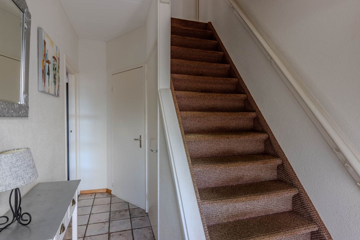De woningentree biedt toegang tot de hal welke toegang biedt tot de trapkast, het toilet en de woonkamer.