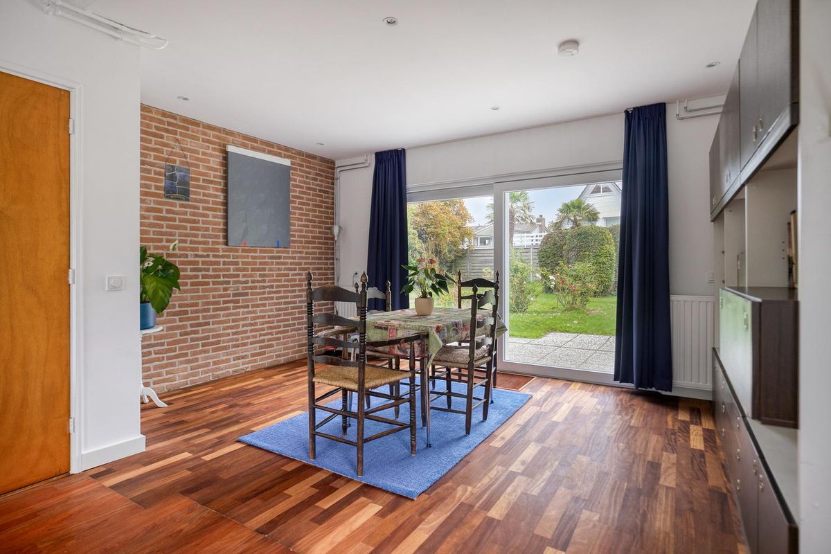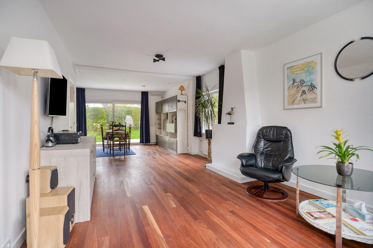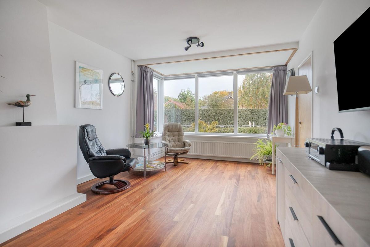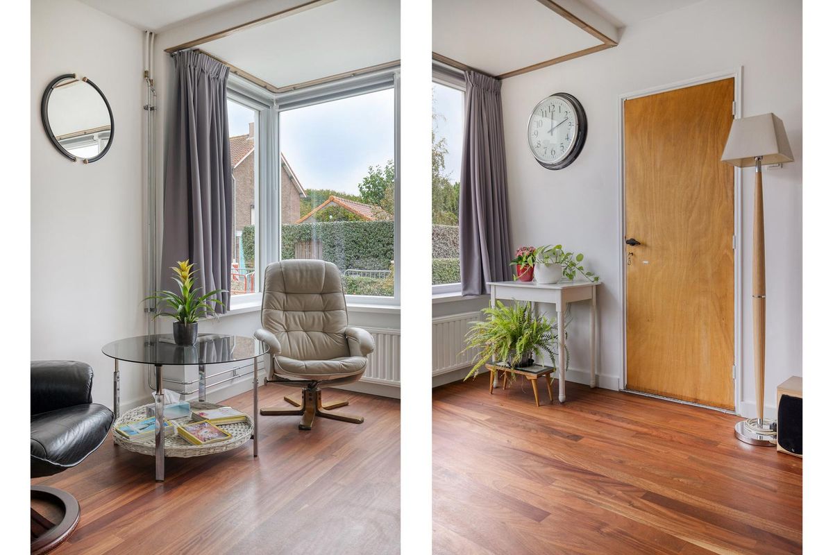 Via de statige hal, met toegang tot de kantoorruimte, meterkast en trapopgang, betreedt u de ruime, lichte en karaktervolle woonkamer met erker. De royale zithoek aan de voorzijde biedt een sfeervol uitzicht over de rustige straat, terwijl de eethoek aan de achterzijde naadloos aansluit op de fraai aangelegde tuin. Dankzij de brede schuifpui worden binnen en buiten één geheel – een heerlijke plek om te genieten van lange zomeravonden of een ontspannen ontbijt in de ochtendzon. Aan de linkerzijde van de hal bevindt zich nog een extra kamer, die zich uitstekend leent als stijlvolle thuiswerkplek, bibliotheek of riante garderobe. De moderne keuken, in een eigentijdse grijstint en uitgevoerd in een praktische L-opstelling, vormt het culinaire hart van de woning. Deze is compleet uitgerust met een inductiekookplaat, vaatwasser, oven, afzuigkap en een vrijstaande koel-vriescombinatie. Aangrenzend bevindt zich een praktische provisiekast, ideaal voor het koel en droog opslaan van uw voorraad. Achter de keuken ligt de ruime bijkeuken, voorzien van witgoedaansluitingen en de cv-installatie (Nefit Ecomline, bj. 2002). Hier vindt u tevens de stijlvolle badkamer op de begane grond, uitgevoerd in een moderne kleurstelling en voorzien van een royale inloopdouche, een fraai wastafelmeubel en een toilet. Alles in deze woning ademt comfort, ruimte en een verzorgde afwerking – perfect afgestemd op eigentijds woongenot.