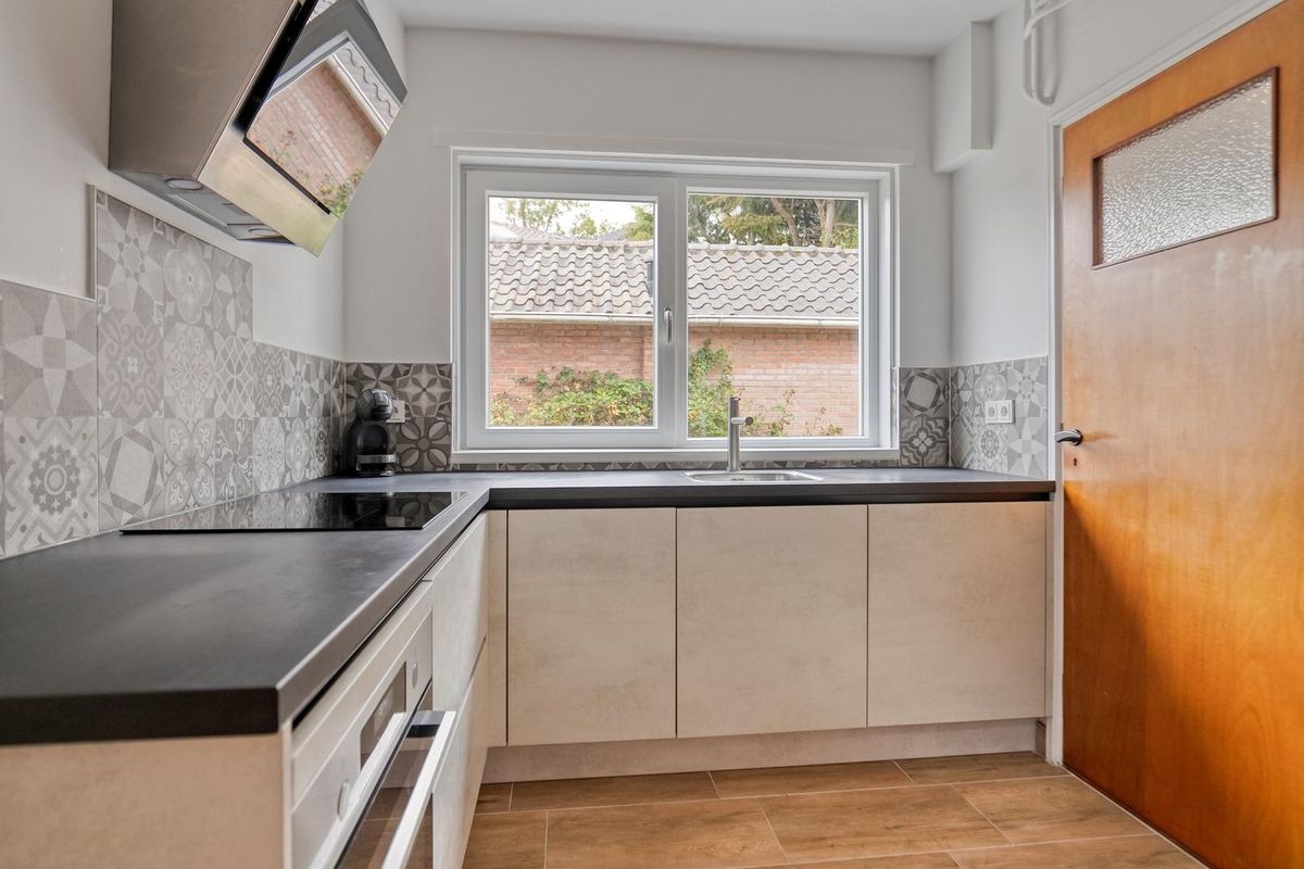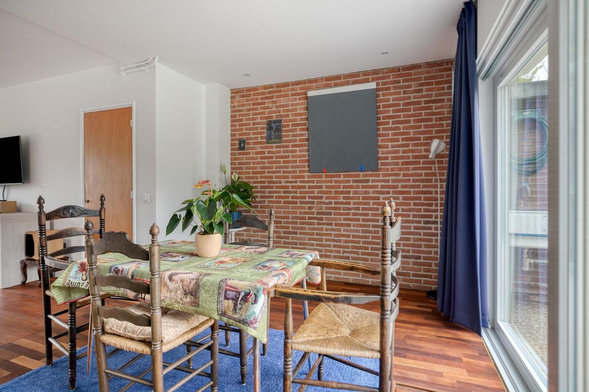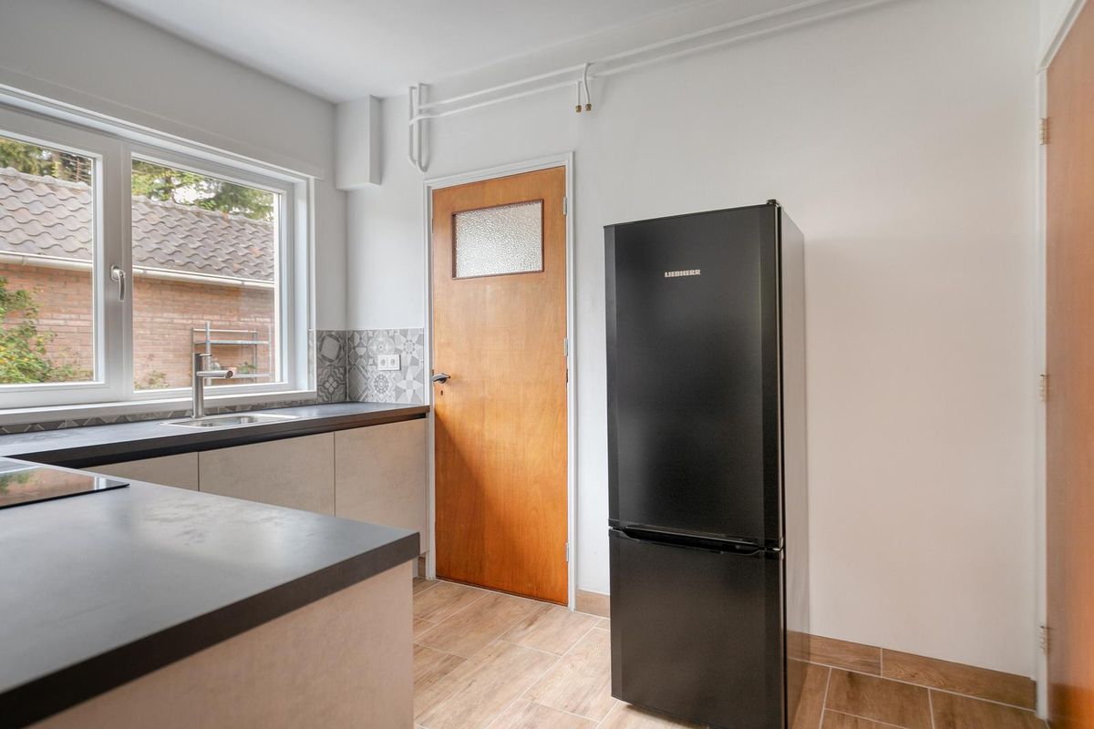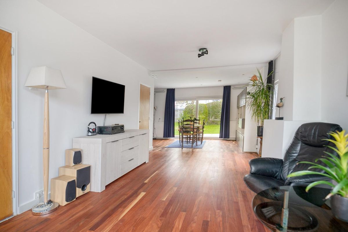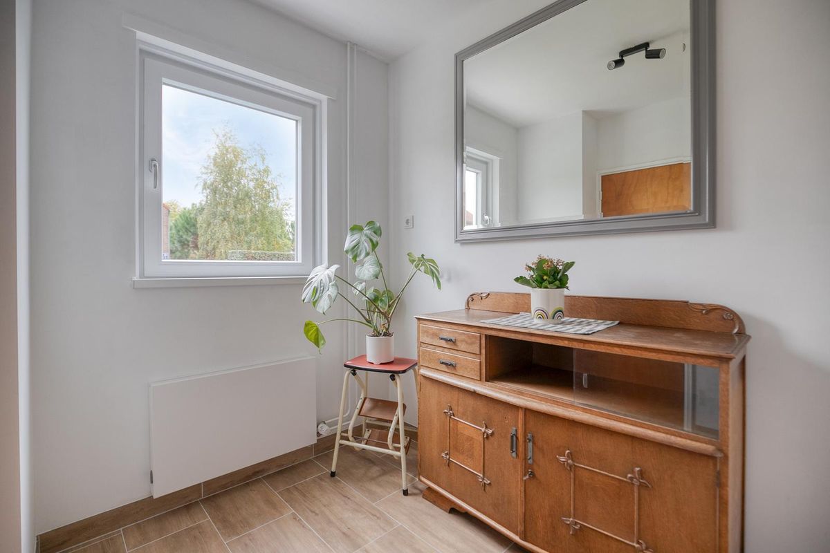Via de statige hal, met toegang tot de kantoorruimte, meterkast en trapopgang, betreedt u de ruime, lichte en karaktervolle woonkamer met erker. De royale zithoek aan de voorzijde biedt een sfeervol uitzicht over de rustige straat, terwijl de eethoek aan de achterzijde naadloos aansluit op de fraai aangelegde tuin. Dankzij de brede schuifpui worden binnen en buiten één geheel – een heerlijke plek om te genieten van lange zomeravonden of een ontspannen ontbijt in de ochtendzon. Aan de linkerzijde van de hal bevindt zich nog een extra kamer, die zich uitstekend leent als stijlvolle thuiswerkplek, bibliotheek of riante garderobe. De moderne keuken, in een eigentijdse grijstint en uitgevoerd in een praktische L-opstelling, vormt het culinaire hart van de woning. Deze is compleet uitgerust met een inductiekookplaat, vaatwasser, oven, afzuigkap en een vrijstaande koel-vriescombinatie. Aangrenzend bevindt zich een praktische provisiekast, ideaal voor het koel en droog opslaan van uw voorraad. Achter de keuken ligt de ruime bijkeuken, voorzien van witgoedaansluitingen en de cv-installatie (Nefit Ecomline, bj. 2002). Hier vindt u tevens de stijlvolle badkamer op de begane grond, uitgevoerd in een moderne kleurstelling en voorzien van een royale inloopdouche, een fraai wastafelmeubel en een toilet. Alles in deze woning ademt comfort, ruimte en een verzorgde afwerking – perfect afgestemd op eigentijds woongenot.