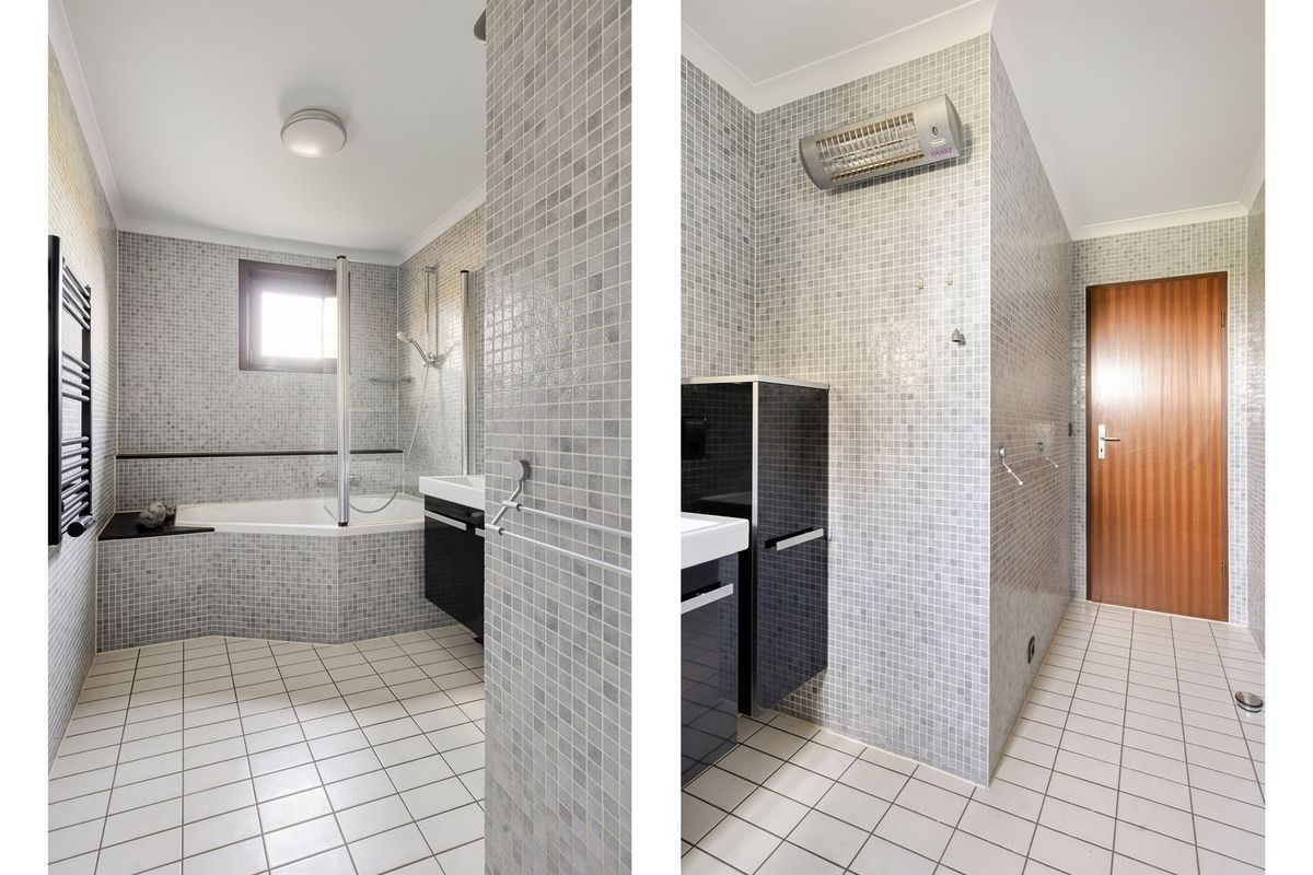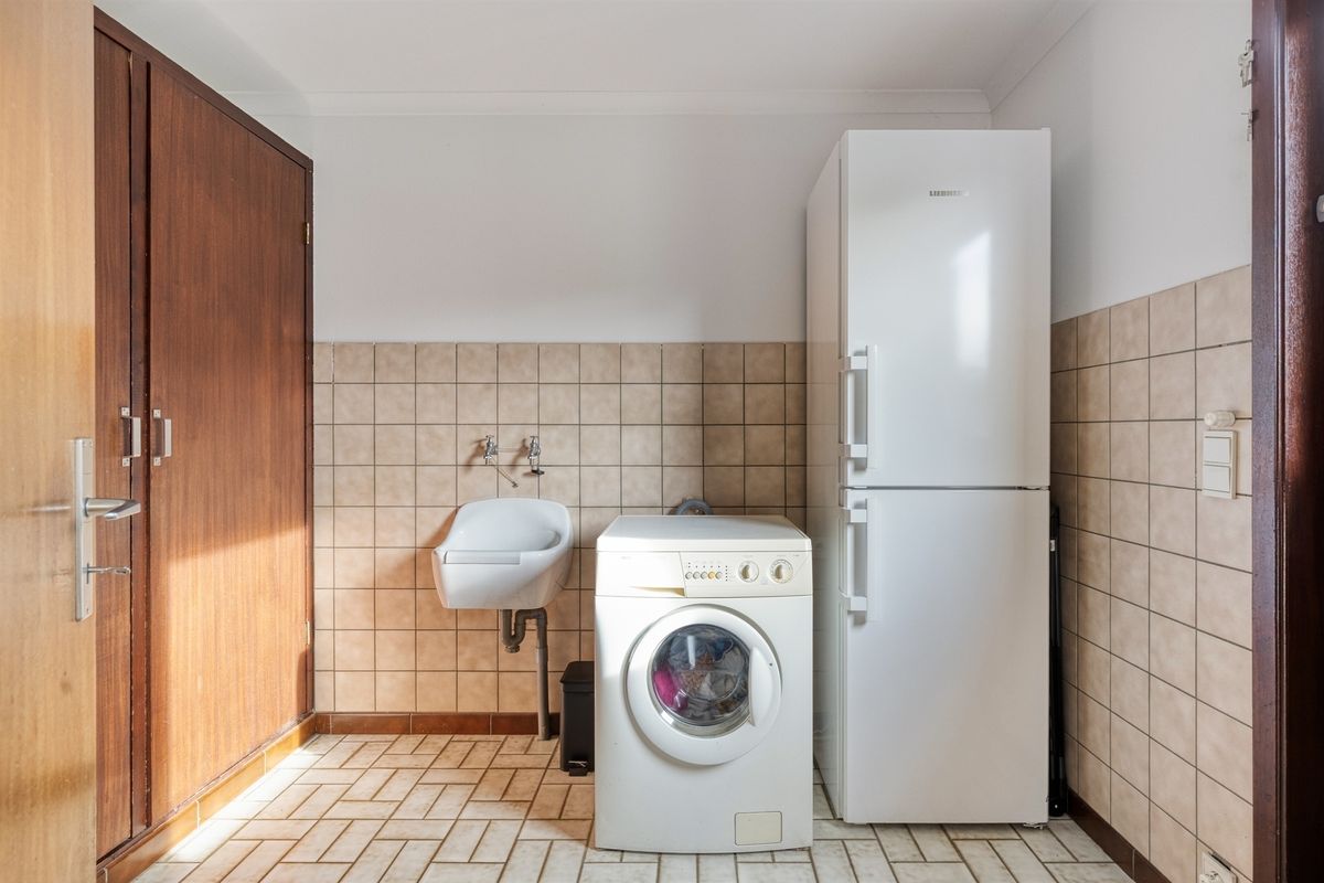 Op het gelijkvloers zijn er 2 slaapkamers, woonkamer, ingerichte keuken, badkamer met bad/douche, hal met gastentoilet, inpandige garage en berging met buitendeur.