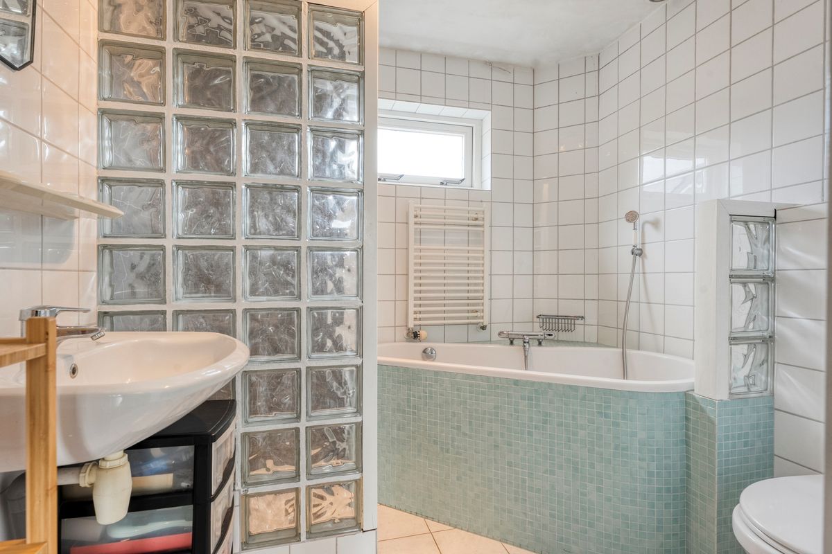 Overloop, drie ruime slaapkamers en de badkamer v.v. toilet, hoekbad, douche en wastafel.