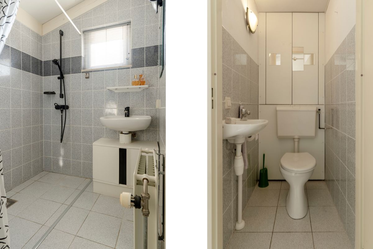 hal met toegang tot een slaapkamer, badkamer welke voorzien is van een douche en wastafel en er is een afzonderlijke toilet. Gezellige woonkamer met schuifpui naar het terras, ouderslaapkamer, open keuken en toegang tot de bijkeuken/berging.