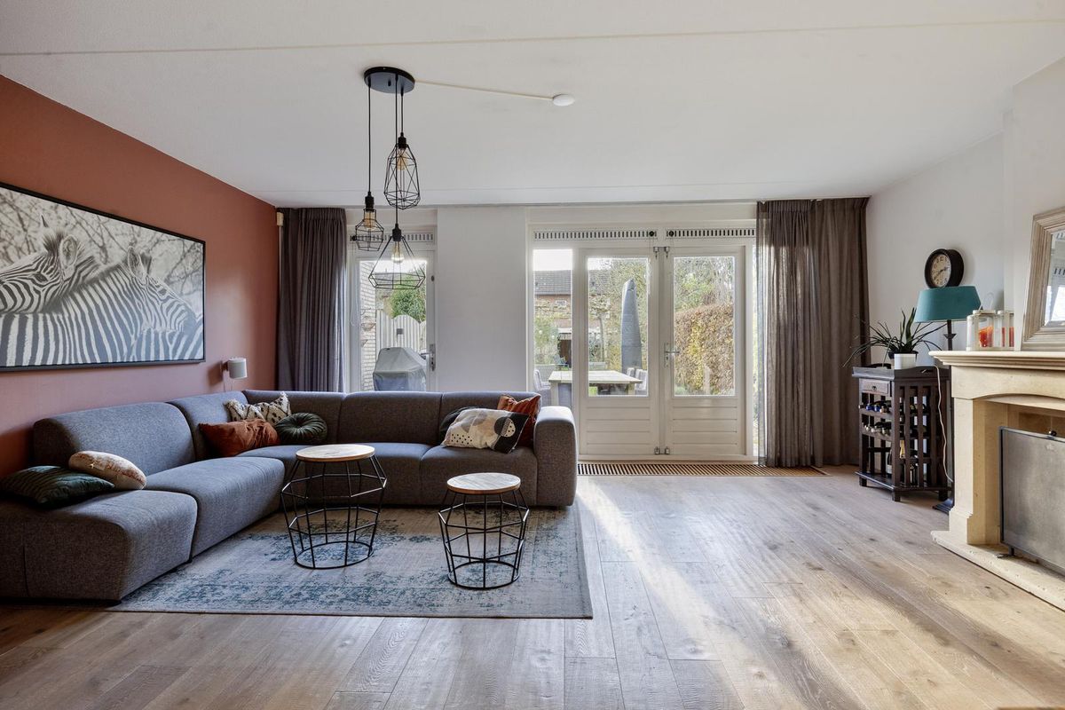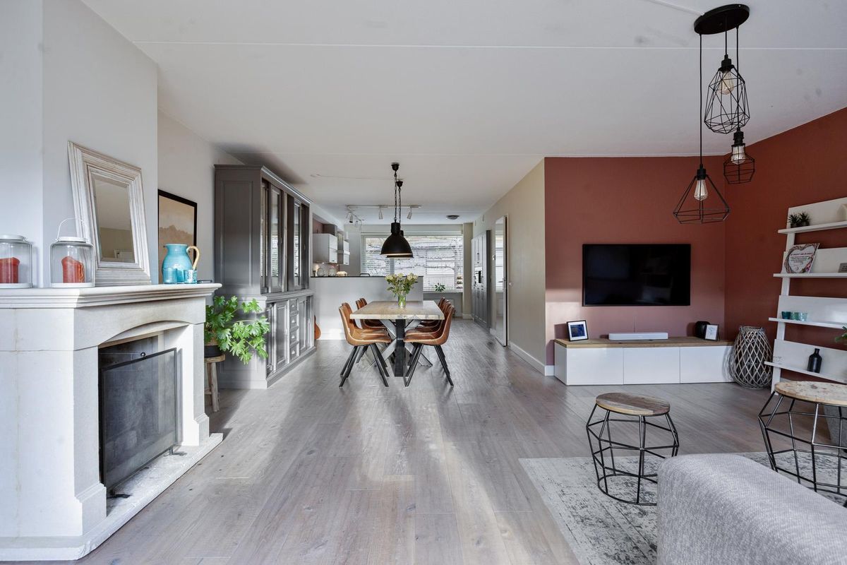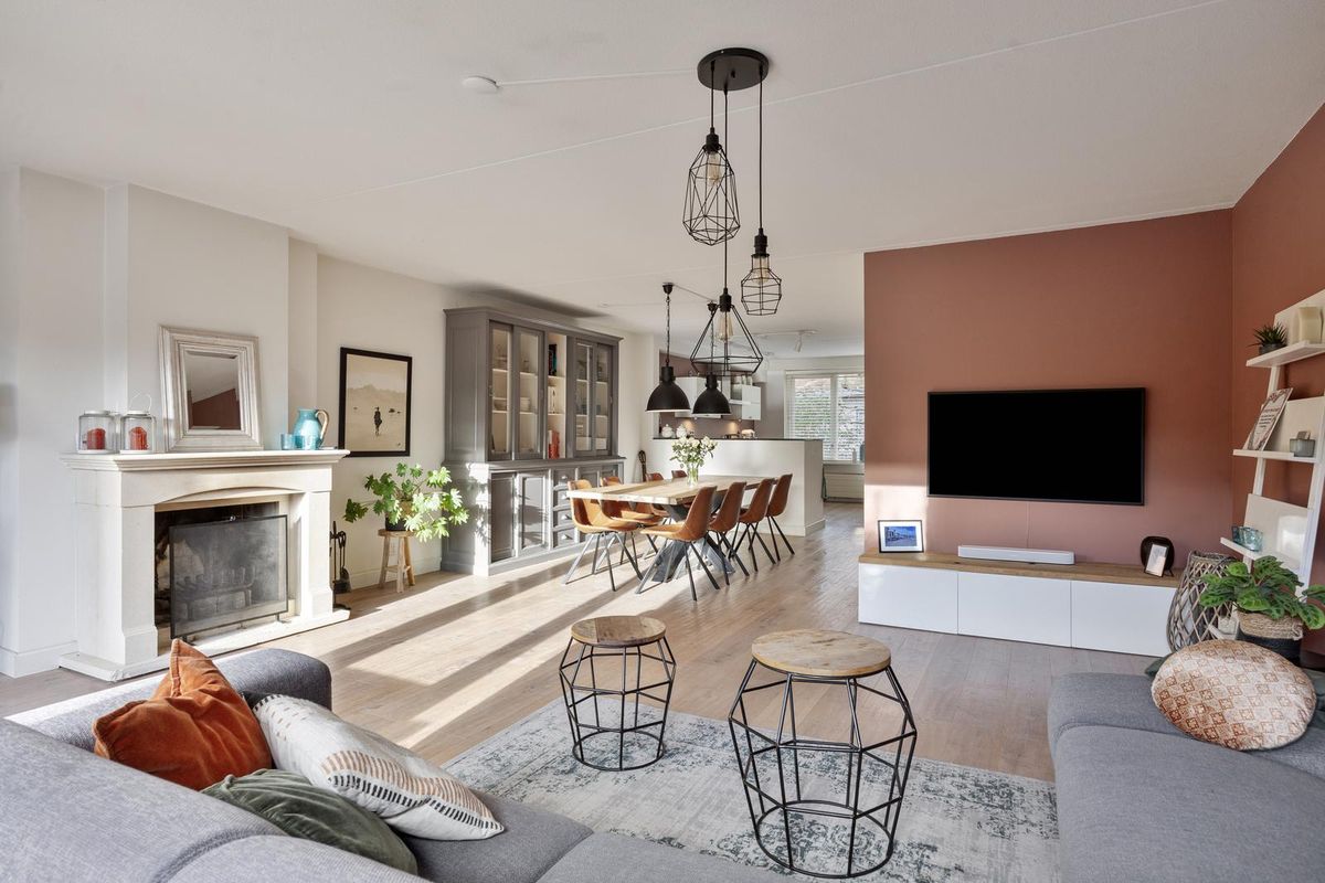 De tuingerichte woonkamer is verrassend ruim en heeft zowel een ruime eethoek als een zeer royale zithoek. Alle wanden zijn strak afgewerkt en de meer dan prachtige houtenvloer maakt het een mooi geheel. De woonkamer heeft heerlijk licht dankzij de dubbele openslaande tuindeuren én een extra loopdeur. De centrale open haard maakt dit dé plek om gezellig te genieten op koudere dagen.