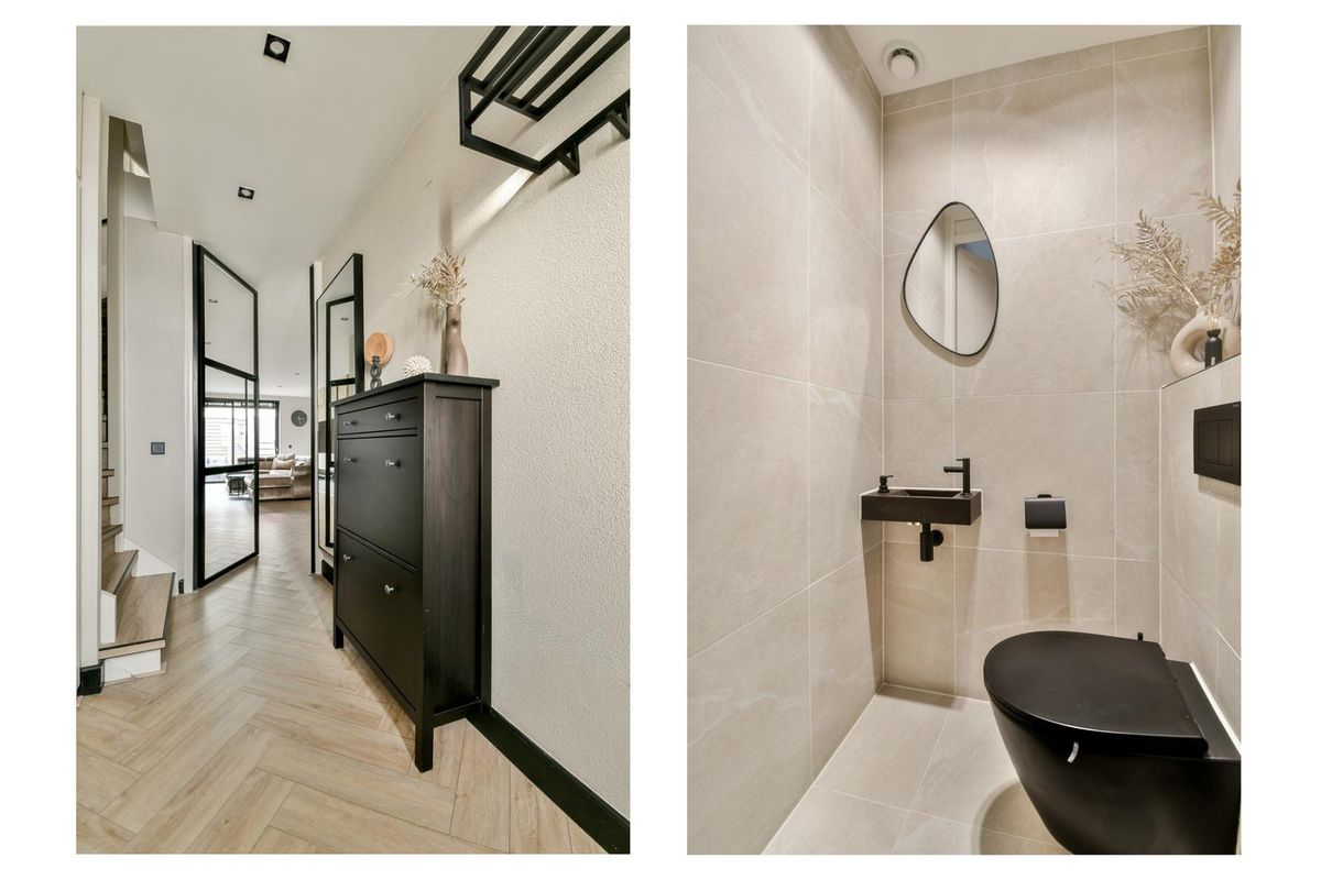 De gehele begane grond is voorzien van vloerverwarming en een stijlvolle visgraatvloer, die doorloopt over alle verdiepingen en zorgt voor een luxe en harmonieuze uitstraling.