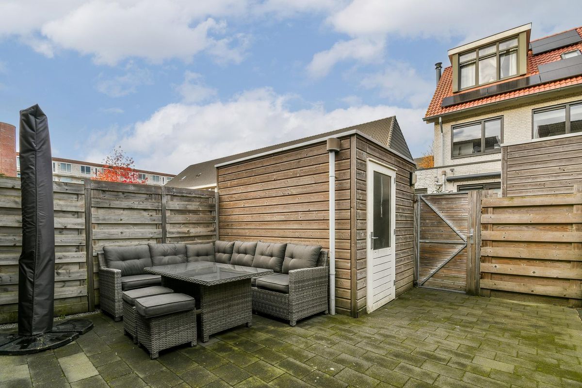 De woning beschikt over een verzorgde achtertuin met terras en voldoende plek voor een loungeset of eettafel. Dankzij de gunstige ligging geniet je hier van veel privacy. De tuin heeft tevens een achterom, waardoor fietsen of tuinmeubilair gemakkelijk bereikbaar zijn.
