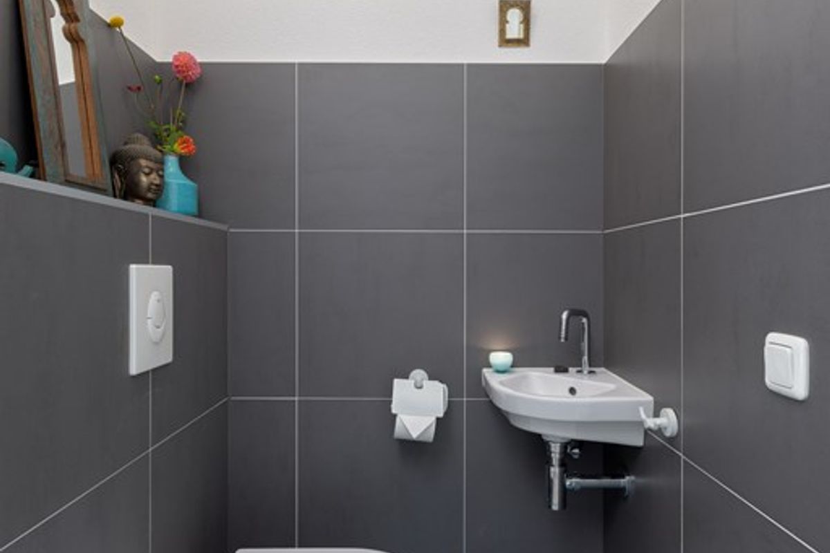 De badkamer is volledig uitgerust met een inloopdouche, ligbad, wastafelmeubel en designradiator een plek waar comfort en ontspanning samenkomen. Het separate toilet op deze verdieping biedt extra gemak en maakt het geheel bijzonder praktisch, ideaal voor gezinnen of logés.