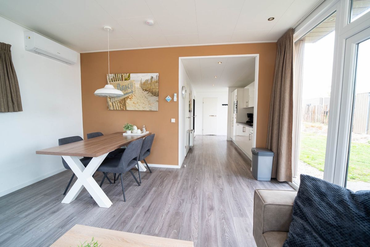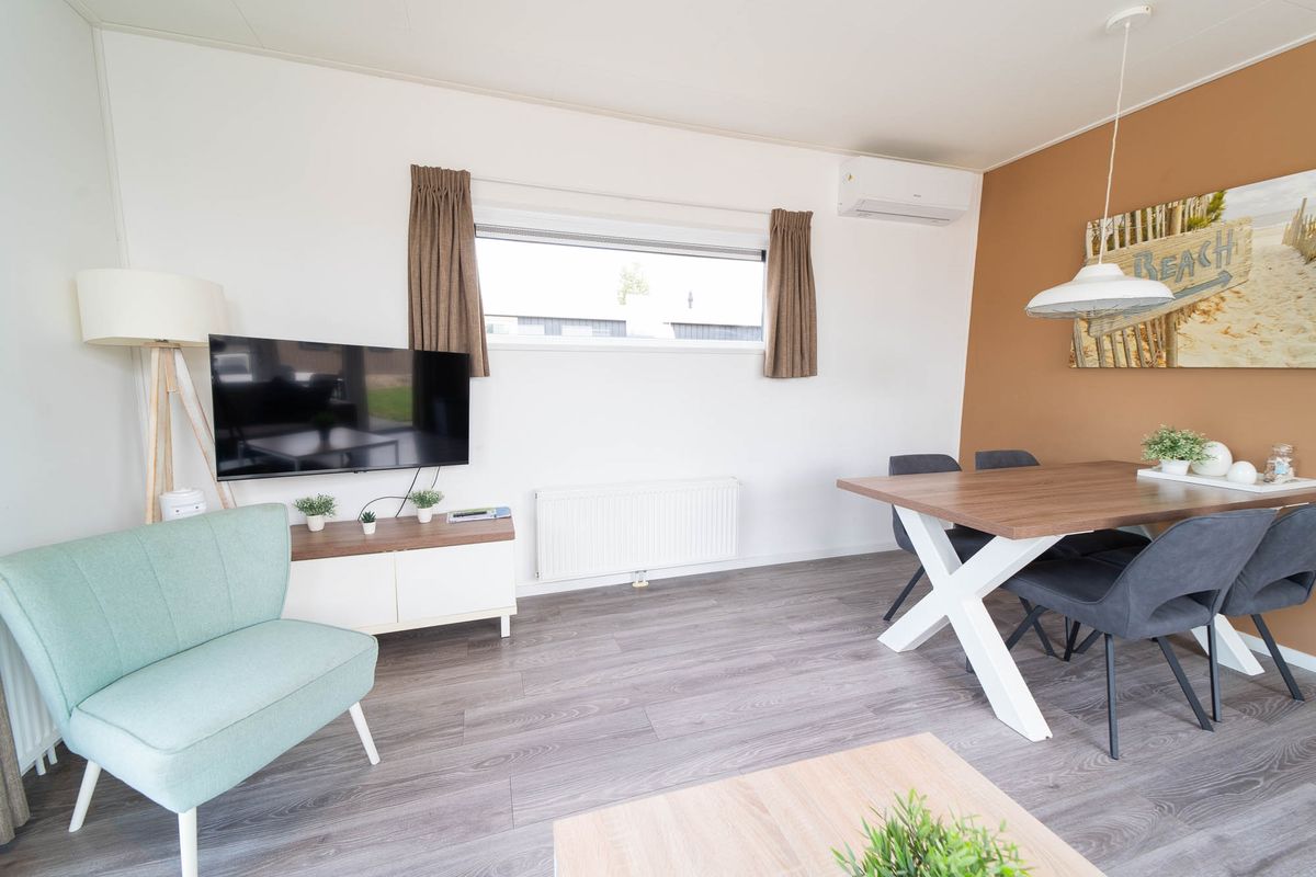 Gelegen op een mooie plek op het Europarcs Resort Poort van Zeeland, nabij de uitgang richting het strand, staat dit ruime en goed onderhouden zespersoons chalet. Nummer 273 is een buitenkans voor wie op zoek is naar een comfortabele recreatiewoning, of het nu voor eigen gebruik, verhuur, of een mix van beide is. Het chalet onderscheidt zich direct door de lichte en open sfeer, mede dankzij het hoge plafond en de hoge ramen in de woonkamer, die een gevoel van ruimte en vrijheid geven. De deuren naar het terras op het zuiden laten de zon rijkelijk naar binnen en zorgen voor een naadloze overgang van binnen naar buiten. De airconditioning zorgt voor extra comfort, zelfs op de warmste dagen. Met 58 m² woonoppervlakte en een royaal perceel van 195 m² op huurgrond, is dit chalet groter dan de meeste vergelijkbare woningen op het park en biedt het een oase van rust op een zeer gewilde locatie. Parkeren op eigen erf is een bijkomend gemak.