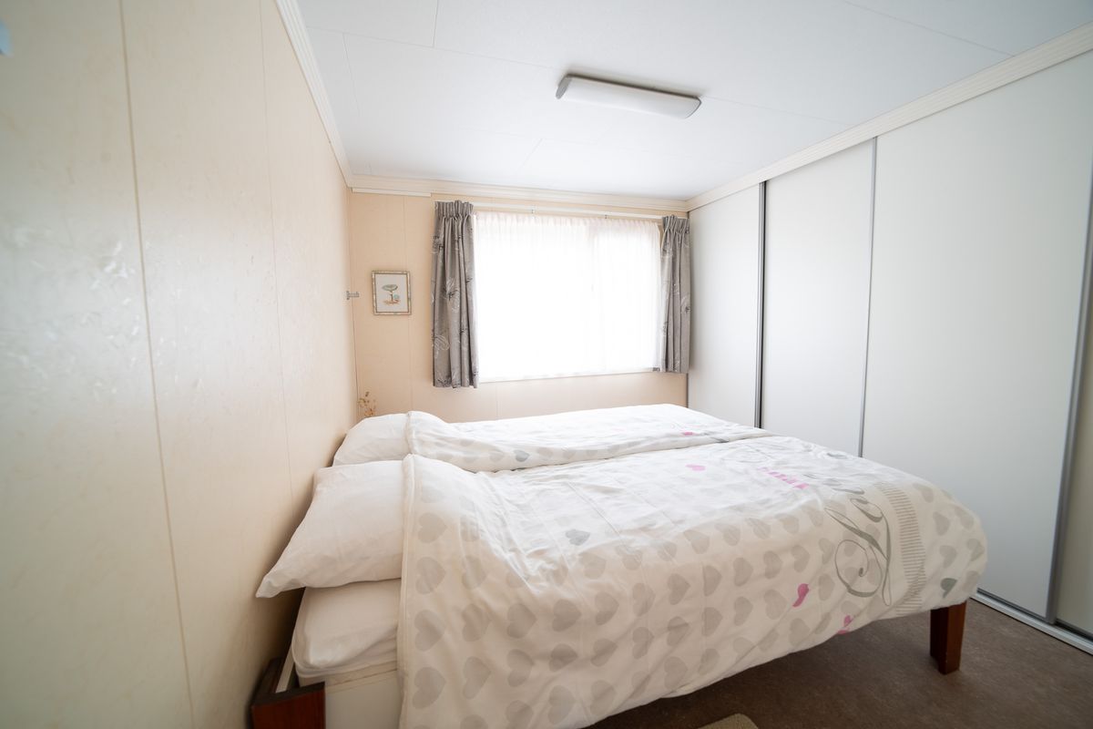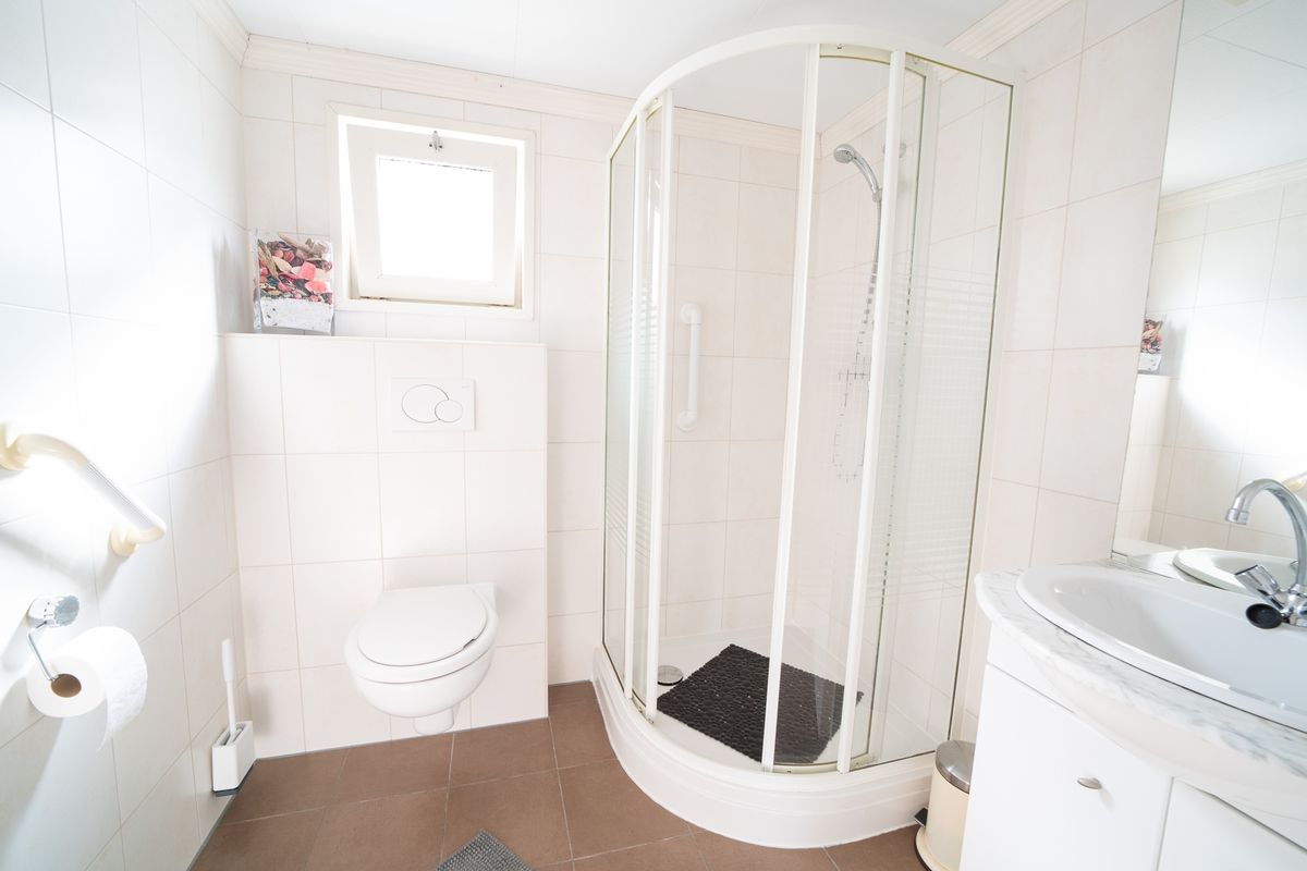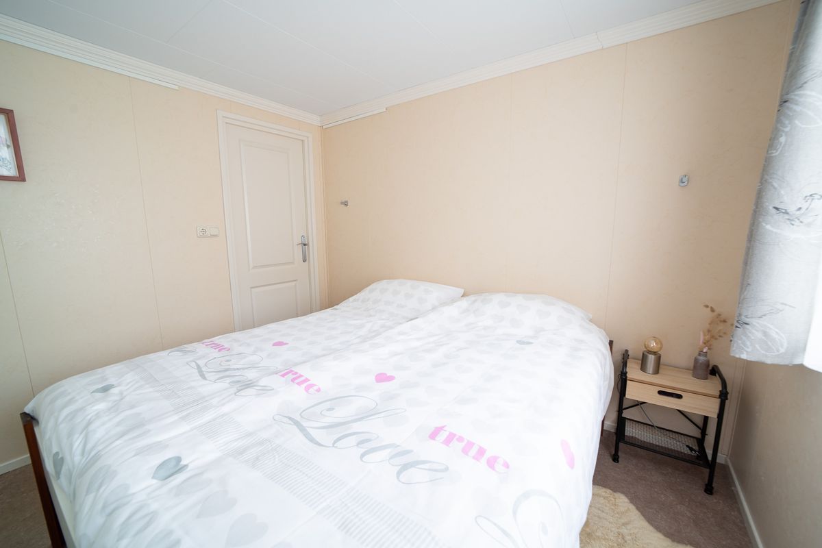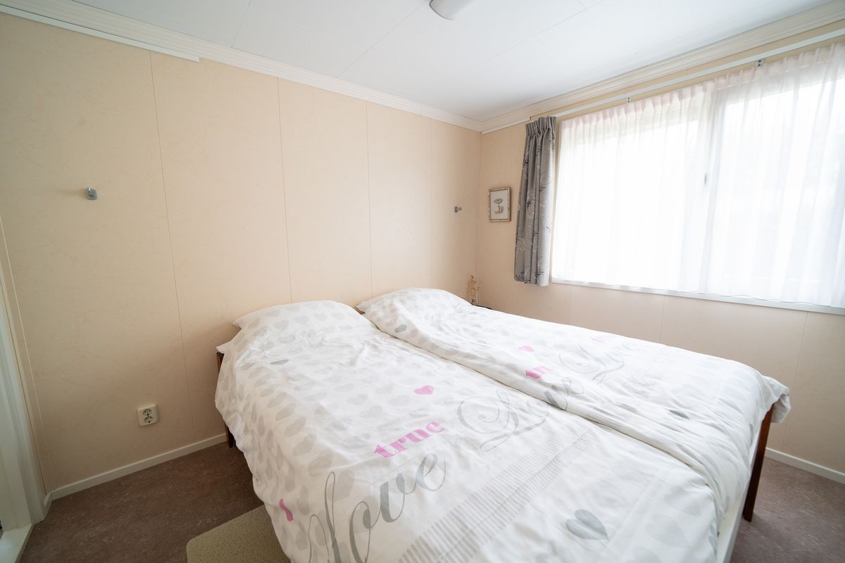 Het chalet beschikt over twee slaapkamers. De ouderslaapkamer is ruim en licht en biedt plaats aan een tweepersoonsbed met een grote inbouwkast voor al uw kleding en spullen. De tweede slaapkamer is compact, maar zeer functioneel. Deze is momenteel ingericht met veel kastruimte, maar kan ook eenvoudig worden omgevormd tot een volwaardige slaapkamer voor gasten of de kinderen. De badkamer is netjes afgewerkt en heeft een douchecabine, een modern wastafelmeubel met spiegel en een hangend toilet.