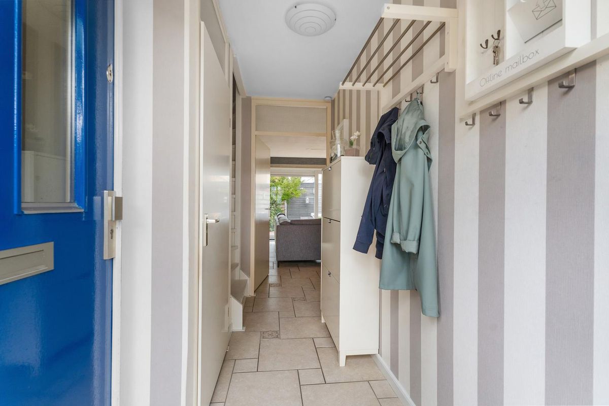 Bij aankomst in de straat kun je gemakkelijk parkeren, direct voor de woning of in de nabijheid ervan. De voortuin biedt een verzorgd en uitnodigend welkom, met voldoende ruimte om buiten een zitje te plaatsen. Bij binnenkomst vind je direct de meterkast waar ook de waterontharder is geplaatst en het moderne toilet uitgevoerd in dezelfde stijlvolle afwerking als de badkamer. Vanuit de hal heb je toegang tot de trapopgang naar de verdieping en de deur naar de woonkamer van circa 26 m². Deze lichte en strak afgewerkte ruimte is een heerlijke plek om te ontspannen, met een mooie schuifpui voorzien van een hor die toegang geeft tot de zonnige achtertuin.