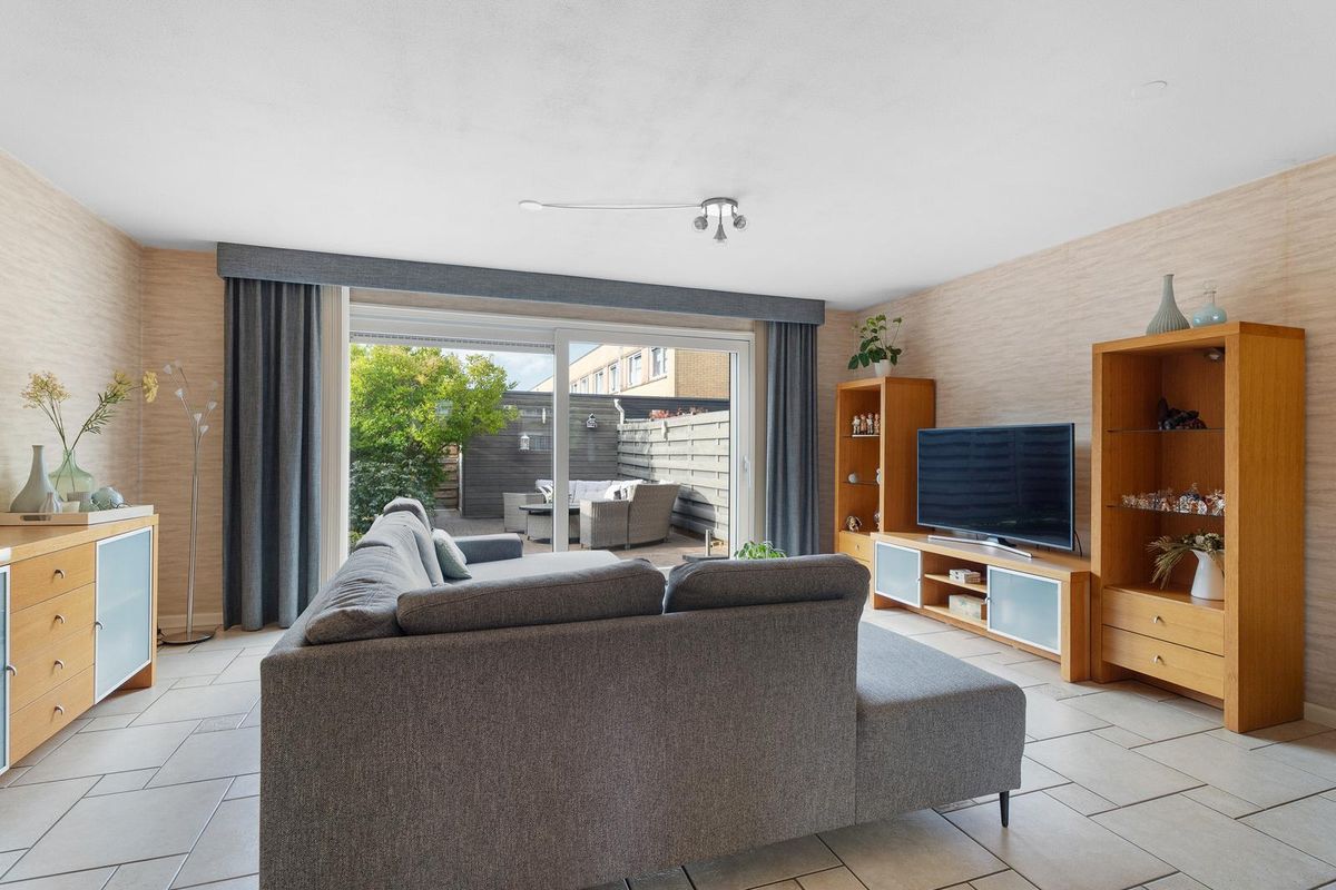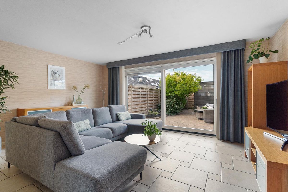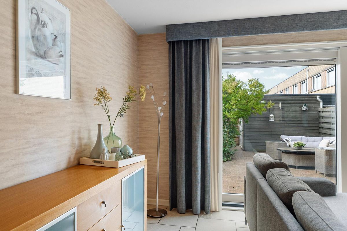 Via de brede schuifpui vanuit de woonkamer stap je direct de heerlijk ruime achtertuin in. De tuin ligt op het zuidwesten, waardoor je de hele dag door kunt genieten van de zon. Dankzij de elektrische zonwering creëer je eenvoudig schaduw op warme dagen en zit je altijd comfortabel.