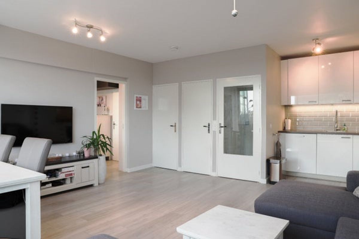 Begane grond gemeenschappelijke hal met brievenbussen, trappenhuis en liften. Dit zeer goed onderhouden appartementen complex is bereikbaar met een lift en gelegen op de 6e etage. Er is een hal met toegang tot alle vertrekken, meterkast, bergkast, modern apart toilet met fontein. Ruime living met grote raampartijen en een open hoekkeuken, modern uitgevoerd en voorzien van koelkast met vriezer, combimagnetron, vaatwasser, spoelbak met mengkraan, recirculatiekap en kookplaat. Badkamer is voorzien van een wastafelmeubel en regendouche set. Er is een aparte kast voor de droger en een ruime slaapkamer met een tweepersoons bed.
