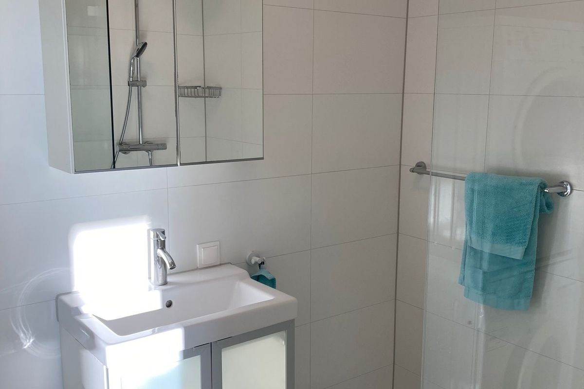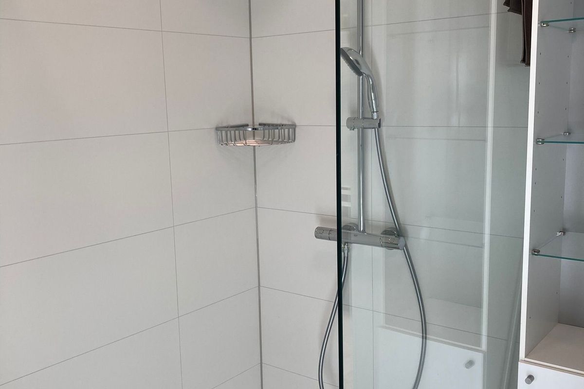 De ruime slaapkamer, wederom met prachtig uitzicht, is voorzien van een hoek kastenopstelling (walk in closet) met veel bergruimte voor kleding/schoenen en 2-persoonsbed, toegang tot de recent vernieuwde badkamer welke is voorzien van een royale inloopdouche, wastafel met spiegelkast, kastruimte en wasmachine/droger.
