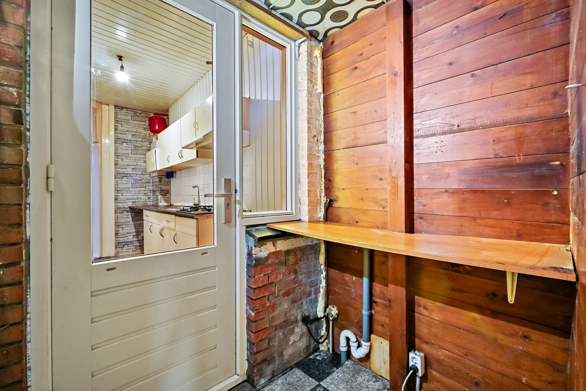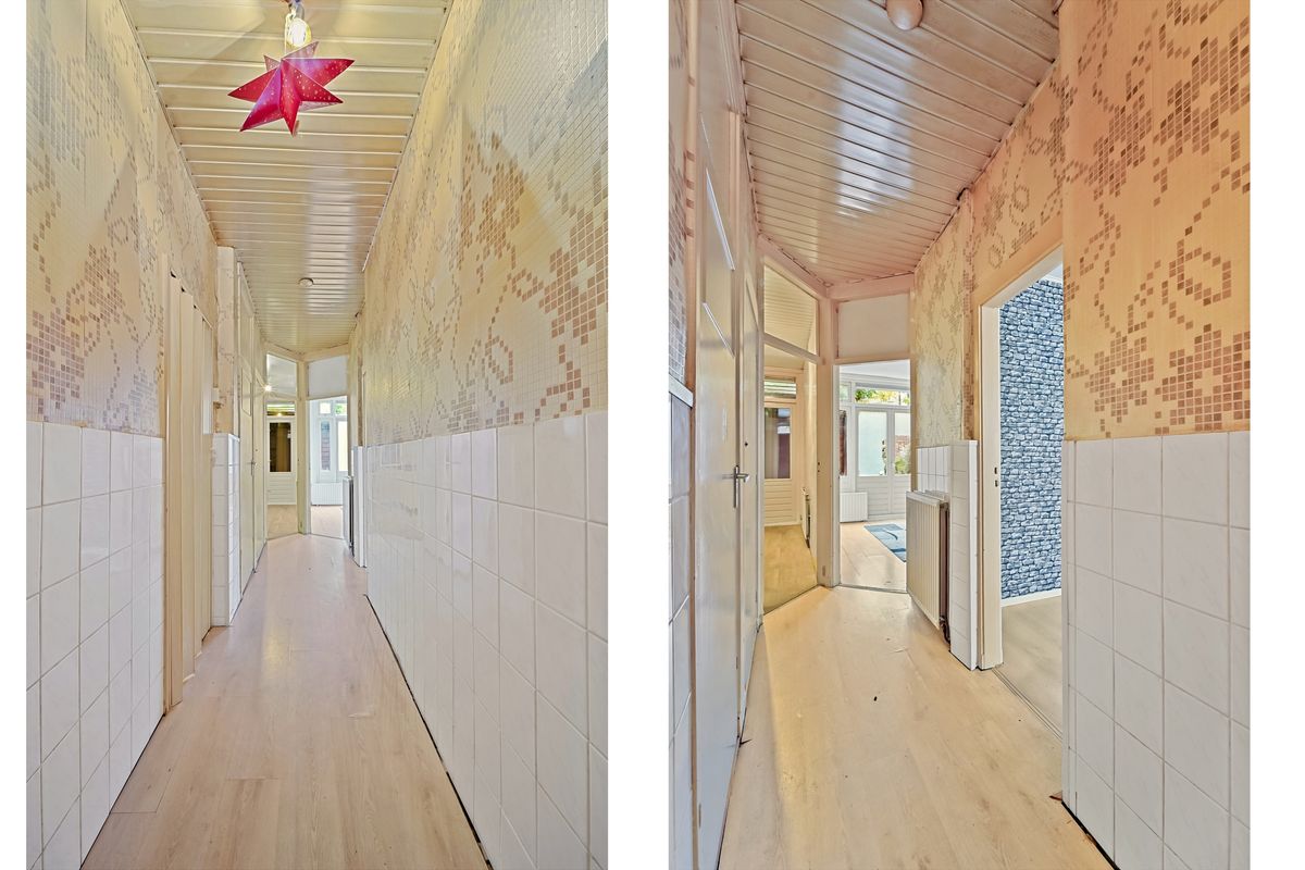 Entree woning op de begane grond; voordeur met hal, gang (5.98 x 1.15) en vaste kast (meterkast); woon/eetkamer (5.80 x 3.45) aan de voorzijde met toegang naar slaapkamer I (4.50 x 1.60) aan de achterzijde; slaapkamer II (4.50 x 2.45) aan de achterzijde; separaat toilet; badkamer met douche en bad meubel; keuken (4.20 x 1.50) aan de achterzijde met wasmachine aansluiting en opstelplaats cv-ketel; uitbouw aan de achterzijde met slaapkamer/bergruimte (3.45 x 2.30); tuin (6.75 x 6.00) aan de achterzijde.