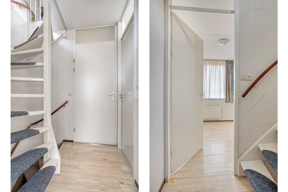 Via entree, hal voorzien van een meterkast (7 groepen en aardlekschakelaars), toilet met fonteintje en entree tot de royale woonkamer met erker aan de voorzijde.
