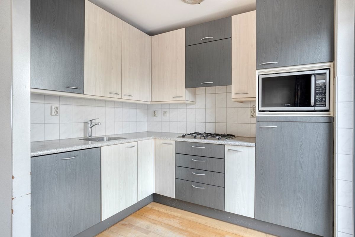 De keuken beschikt over diverse apparatuur zoals een koelkast, RVS spoelbak, gaskookplaat ingebouwde afzuigkap, magnetron en een vaatwasser.