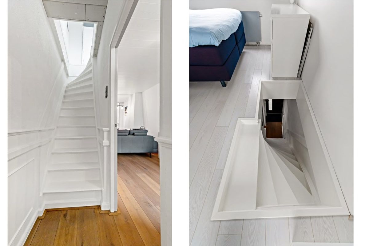 Op de bovenverdieping bevindt zich een royale slaapkamer met veel lichtinval en een frisse uitstraling dankzij de witte wanden, gestucte plafonds met gedeeltelijk inbouwspots en een lichte vloer. De kamer is ruim genoeg voor een tweepersoonsbed en extra kasten. Bovendien is er extra bergruimte boven het slaapgedeelte aanwezig. De open ruimte is nu verdeeld met een werkkamer aan de achterzijde en de slaapkamer met dakkapel aan de voorzijde. Indien gewenst kunnen hier twee kamers worden gecreëerd. Aan de achterzijde is het riante dakterras gelegen. Het dakterras ligt op het zuiden waardoor je hier de gehele dag van de zon kunt genieten.