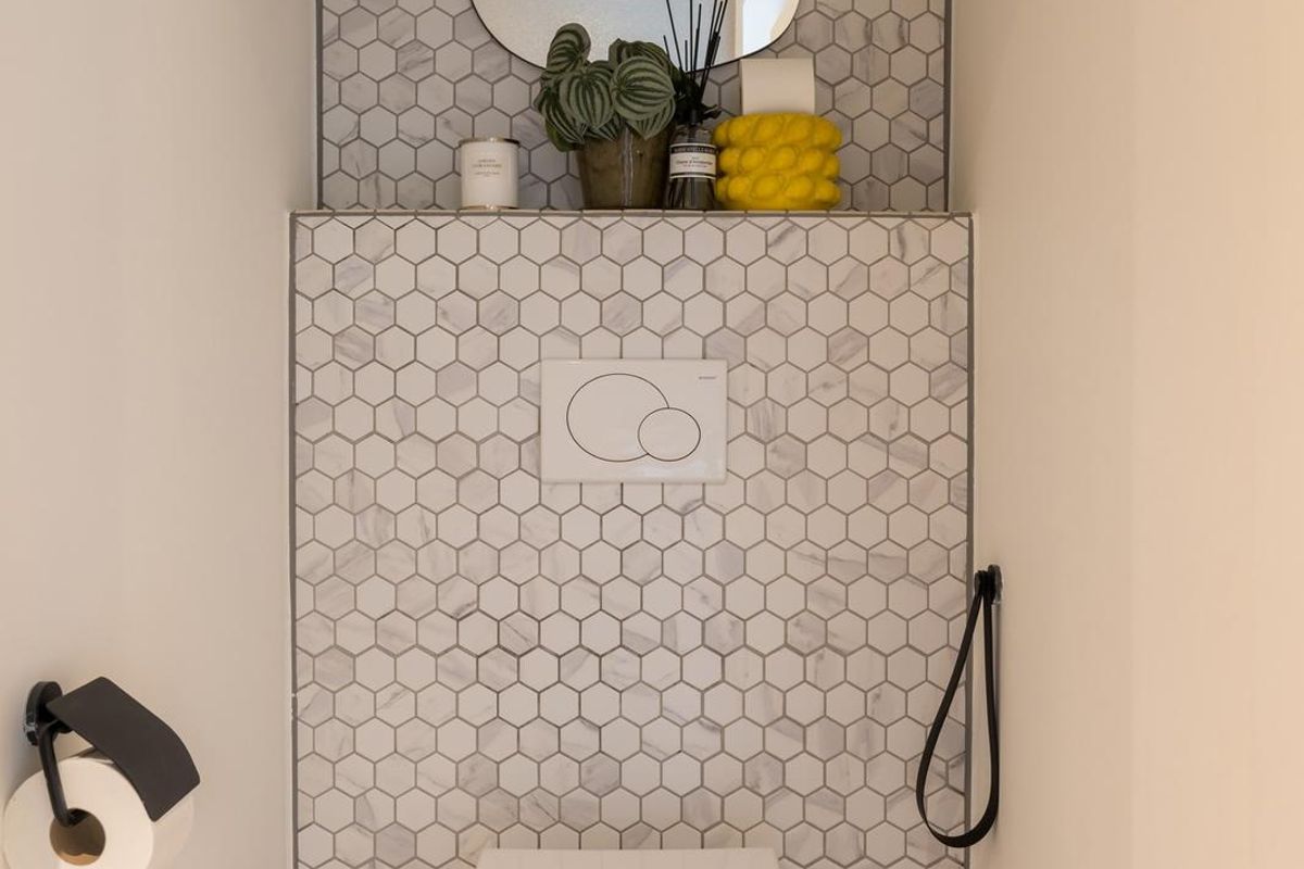 Vanuit de keuken bereikt u de bijkeuken met extra kastruimte De masterbedroom is een oase van rust, met grote raampartijen, schuifdeuren naar de tuin en directe toegang tot de stijlvolle badkamer met ligbad, inloopdouche, toilet en breed wastafelmeubel. Daarnaast is er een comfortabele logeerkamer/2de slaapkamer.