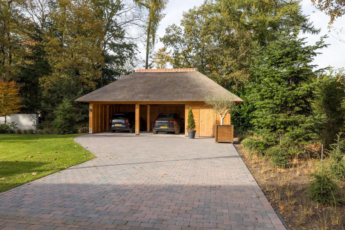Luxe rietgedekte kapschuur met carport voor 2 auto's en bergschuur (2025);