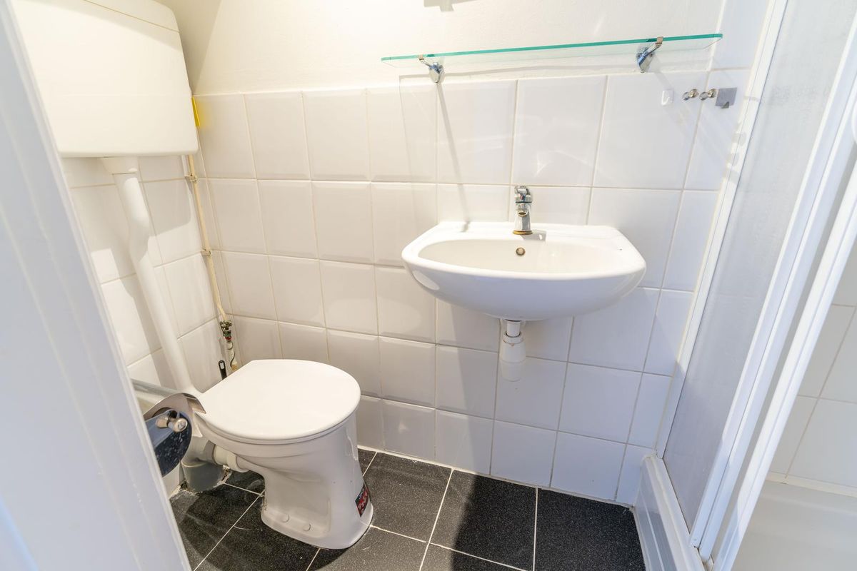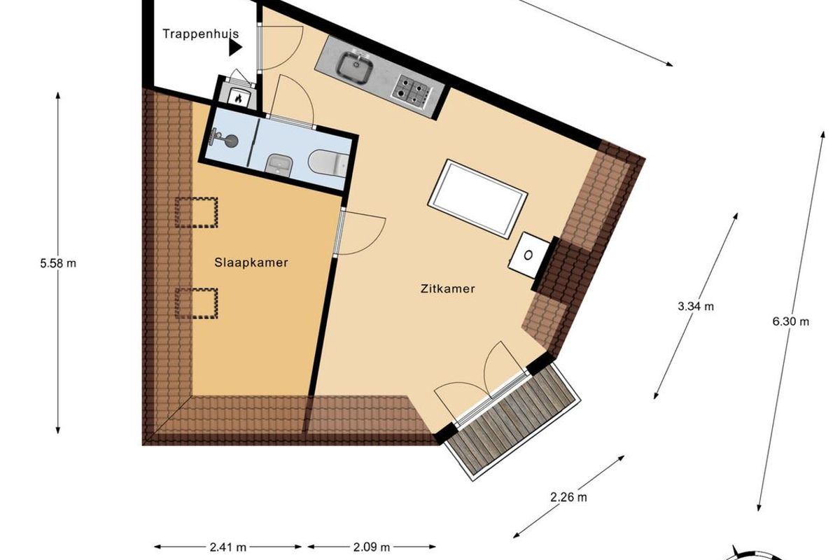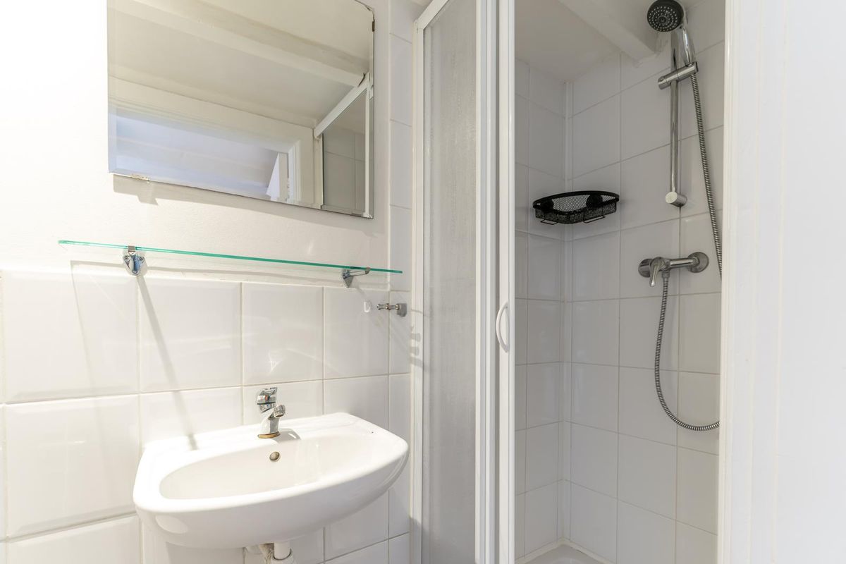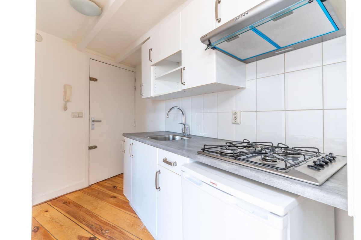 Entree op de eerste verdieping. Trap naar de 3e etage. Woonkamer met houten balken en prettige lichtinval en openstaande deur naar het balkon aan de voorzijde, open keuken, aparte slaapkamer aan de rustige achterzijde, badkamer met douche, wastafel en toilet.
