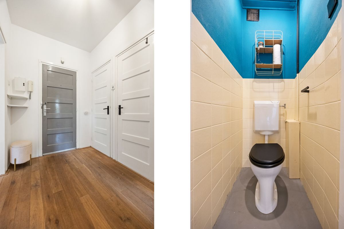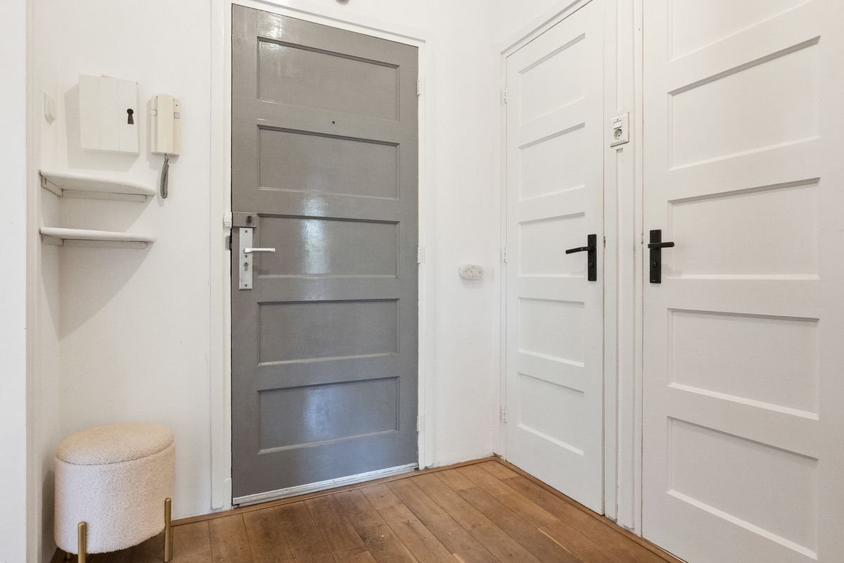Via de gedeelde entree van het complex loop je door het portiek naar de voordeur van het appartement. Je komt binnen in de entree met ruimte voor een garderobe. Vanuit hier heb je toegang tot alle vertrekken. Aan de linkerkant bevinden zich het separate toilet en de meterkast.
